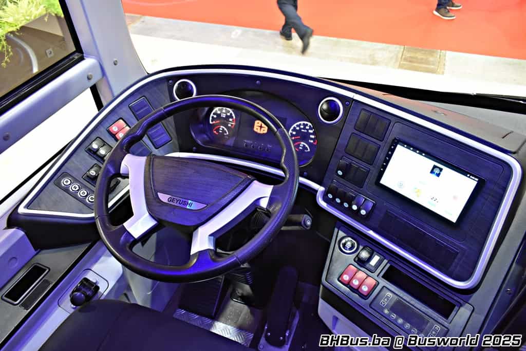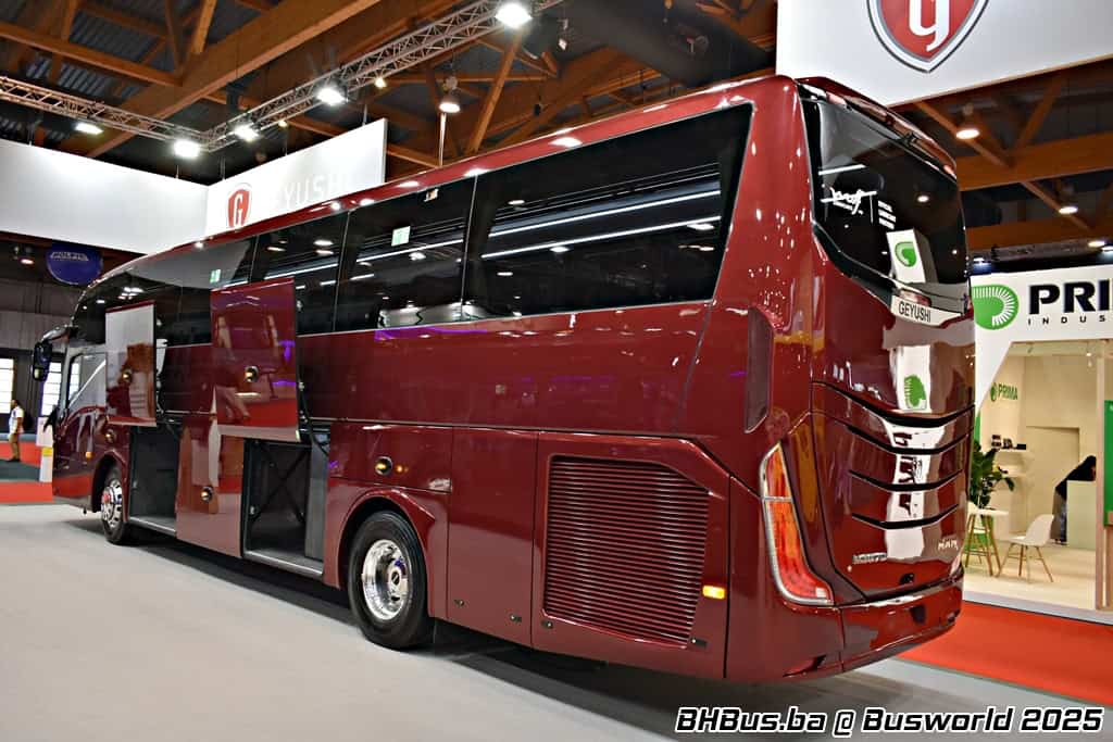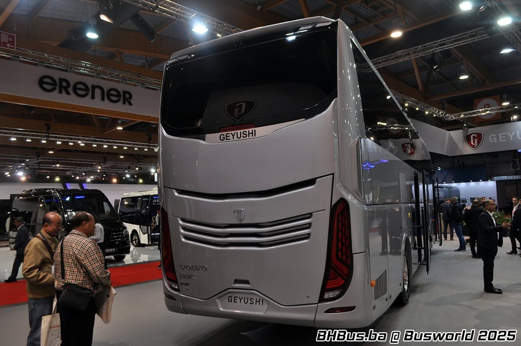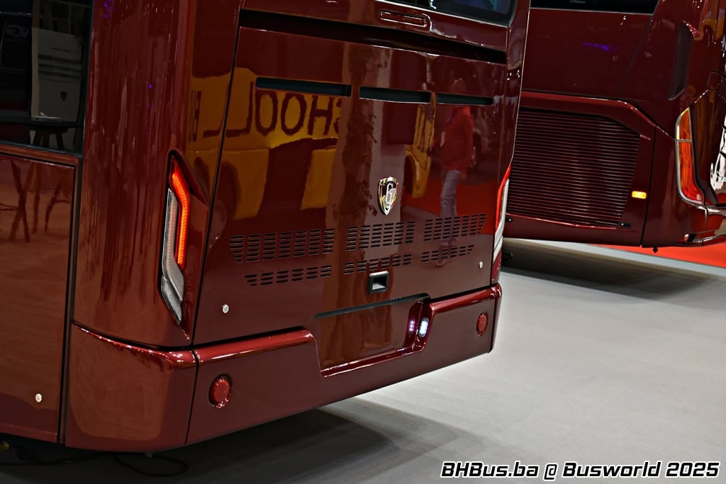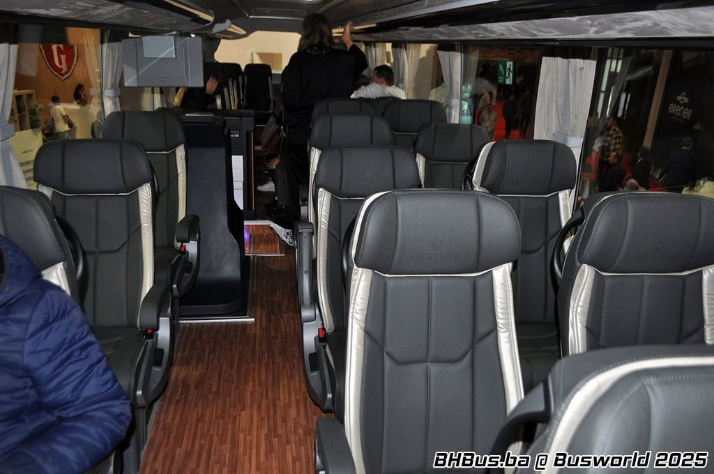 Egispatski Geyushi Automotive Industry se dobro pripremio sa pet modela, u odnosu na tri koliko ih je bilo na Busworld 2023. Izložena su dva Euro 5 turistička autobusa, jedan gradski električni, jedan školski midibus te jedan Euro 6 turistički autobus za kojeg su nam rekli da bi mogao da se nađe u ponudi i za EU tržište. Izloženi su Euro 5 model Luxor M370D na MAN šasiji i motoru čija unutrašnjost izgleda zaista odlično s posebnim naglaskom da je suvozačko sjedište isto kao i putnička. Međutim, finalna obrada vozačevog radnog prostora bi mogla biti malo bolja. Do njega je bio i električni gradski model Eco koji je da kažemo manje-više standard kao i slični “električari” u ponudi, dok je iza njega bio školski midibus Horus, koji je ipak bio tu više da se pokaže da postoji i taj segment u proizvodnji nego da se ponudi za EU tržište. Ipak, zvijezde štanda su bila dva modela Cairo koji su rađeni na Volvo mehanici. Vozilo se nudi na tri Volvo šasije: B8R, B11R i B13R. Vozilo ima aerodinamični prednji dio, potpuno LED vanjska svjetla i panoramske bočne prozore. Autobus nudi do 13 kubnih metara prtljažnog prostora, s pretincima postavljenim iznad osovina radi efikasnosti. Kapacitet putnika je do 51, pored sjedišta vozača i posade, a izloženi modeli su bili u VIP i standardnoj izvedbi sjedišta. Dostupni su u Euro 5 i Euro 6 izvedbi Volvo motora.