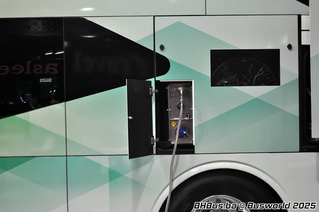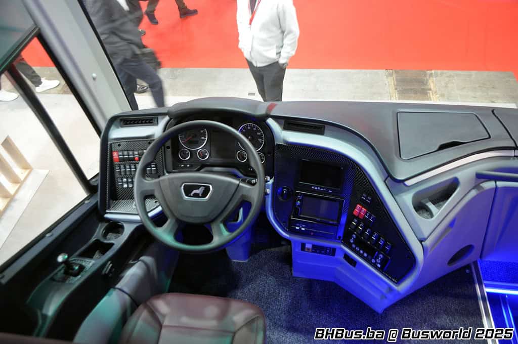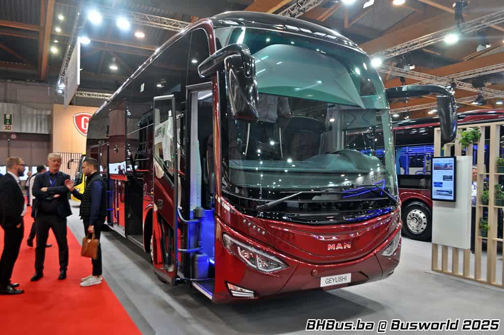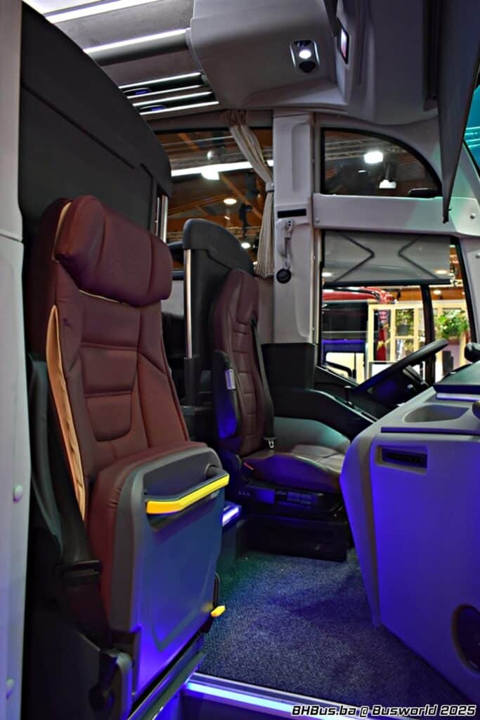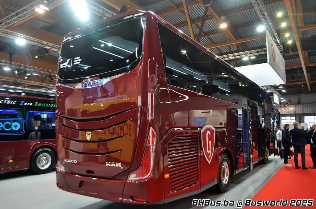 Egispatski Geyushi Automotive Industry se dobro pripremio sa pet modela, u odnosu na tri koliko ih je bilo na Busworld 2023. Izložena su dva Euro 5 turistička autobusa, jedan gradski električni, jedan školski midibus te jedan Euro 6 turistički autobus za kojeg su nam rekli da bi mogao da se nađe u ponudi i za EU tržište. Izloženi su Euro 5 model Luxor M370D na MAN šasiji i motoru čija unutrašnjost izgleda zaista odlično s posebnim naglaskom da je suvozačko sjedište isto kao i putnička. Međutim, finalna obrada vozačevog radnog prostora bi mogla biti malo bolja. Do njega je bio i električni gradski model Eco koji je da kažemo manje-više standard kao i slični “električari” u ponudi, dok je iza njega bio školski midibus Horus, koji je ipak bio tu više da se pokaže da postoji i taj segment u proizvodnji nego da se ponudi za EU tržište. Ipak, zvijezde štanda su bila dva modela Cairo koji su rađeni na Volvo mehanici. Vozilo se nudi na tri Volvo šasije: B8R, B11R i B13R. Vozilo ima aerodinamični prednji dio, potpuno LED vanjska svjetla i panoramske bočne prozore. Autobus nudi do 13 kubnih metara prtljažnog prostora, s pretincima postavljenim iznad osovina radi efikasnosti. Kapacitet putnika je do 51, pored sjedišta vozača i posade, a izloženi modeli su bili u VIP i standardnoj izvedbi sjedišta. Dostupni su u Euro 5 i Euro 6 izvedbi Volvo motora.