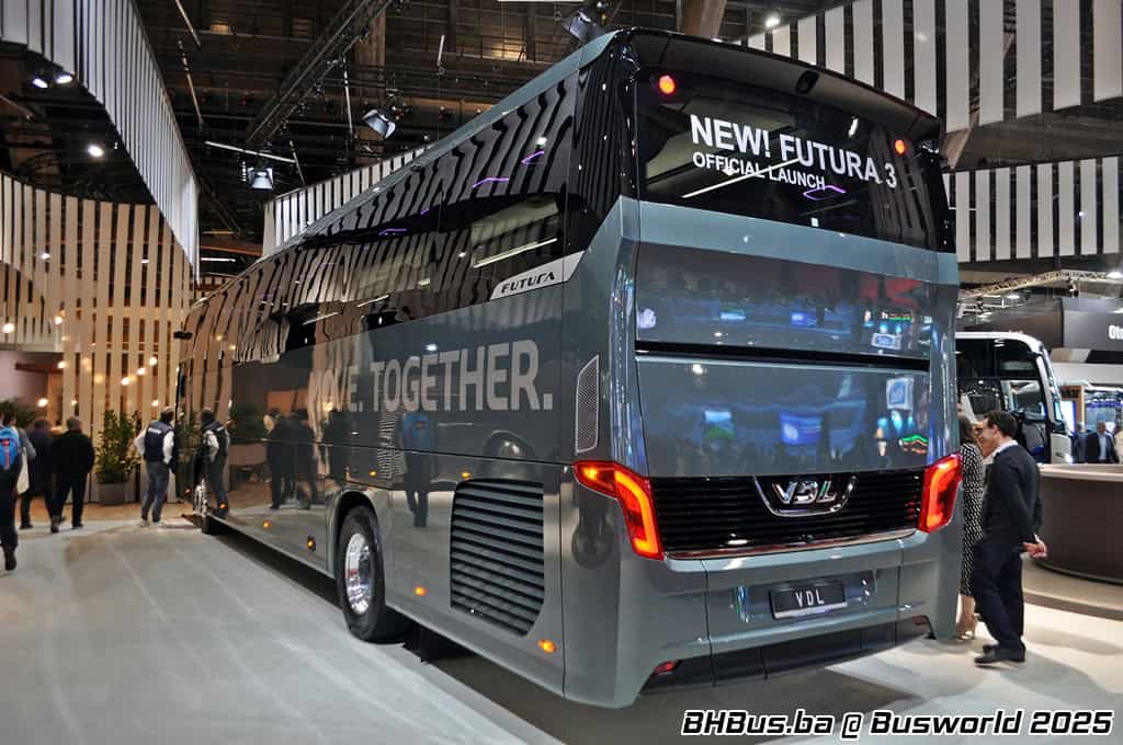 Što se tiče Future 3, novi autobus predstavlja redizajnirani aerodinamični eksterijer, novi koncept unutrašnjosti usmjeren na udobnost i ergonomiju putnika, te vozačev prostor s poboljšanom vidljivošću i digitalnom podrškom, kako navodi proizvođač. Sigurnosni sistemi su ažurirani kako bi bili u skladu s najnovijom Evropskom uredbom o općoj sigurnosti (GSR), dok modularna arhitektura pogonskog sklopa osigurava spremnost za buduće tehnologije. Ključno obećanje je poboljšana efikasnost, sa smanjenom potrošnjom goriva do 15%, prema VDL-u. Tome će svakako doprinijeti i činjenica da je ukupan kapacitet dizelskog rezervoara 900 litara (450+450 litara). Predstavljena je izvedba od 13 metara na dvije osovine, a iduće godine se očekuje troosovinska izvedba te standardna 12-metarska izvedba na dvije osovine. Nažalost, dvospratna Futura je završila svoju karijeru i njeno mjesto će zauzeti Van Hool Astromega. Najavljeno je da se za Futuru 3 osim dizelske razmatraju opcije i za električni pogon te pogon na vodik.