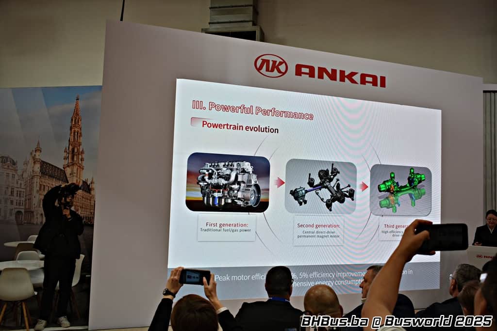 Kineski proizvođač autobusa Ankai je ove godine imao dosta skroman štand sa samo dva vozila, ali su oba vozila bila svjetske premijere. Oba vozila su na električni pogon i radi se o malom modelu E60 te unaprijeđenoj verziji dvospratnog autobusa za razgledanje grada E12S. Dizajn mikrobusa E60 se fokusira na strukturnu čvrstoću, sigurnosne sisteme i modularnu prilagodljivost. Vozačka kabina ima integriranu digitalnu instrument tablu i veliki ekran u kokpitu, nudeći ažurirani operativni interfejs. Model E12S je električni dvospratni autobus sa otvorenim krovom četvrte generacije. Vozilo uključuje ključna unapređenja, uključujući produženo međuosovinsko rastojanje koje omogućava 50 sjedišta na gornjoj palubi i 23 sjedišta na donjoj palubi. Interesantno je da su oba vozila našla svoje kupce nakon sajma u Francuskoj te da će Ankai probati napraviti proboj na evropsko tržište nudeći vozila pod brendom Urbaneo.