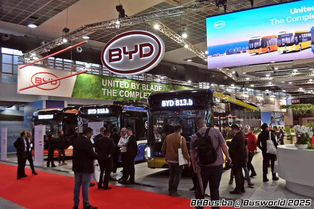 BYD predstavlja najvećeg proizvođača električnih vozila na svijetu i autobusi zauzimaju značajan udio u prodaji i izvozu. Predstavili su se na velikom štandu sa pet električnih vozila i jednom šasijom, a nisu izostale ni premijere. Izloženi su bili solo električni autobusi B12, B12.b LE (Low Entry) i B13.b LE, zglobni električni autobus B18.b i jako zanimljivi međugradski električni autobus B12.b HF (High Floor). Spomenuta šasija je bila predstavljena sa Blade Battery sistemom baterija koje su integrisane u pod, na ovoj šasiji će biti dizajniran budući međugradski autobus sa prtljažnim kapacitetom od 5,7 m³.
