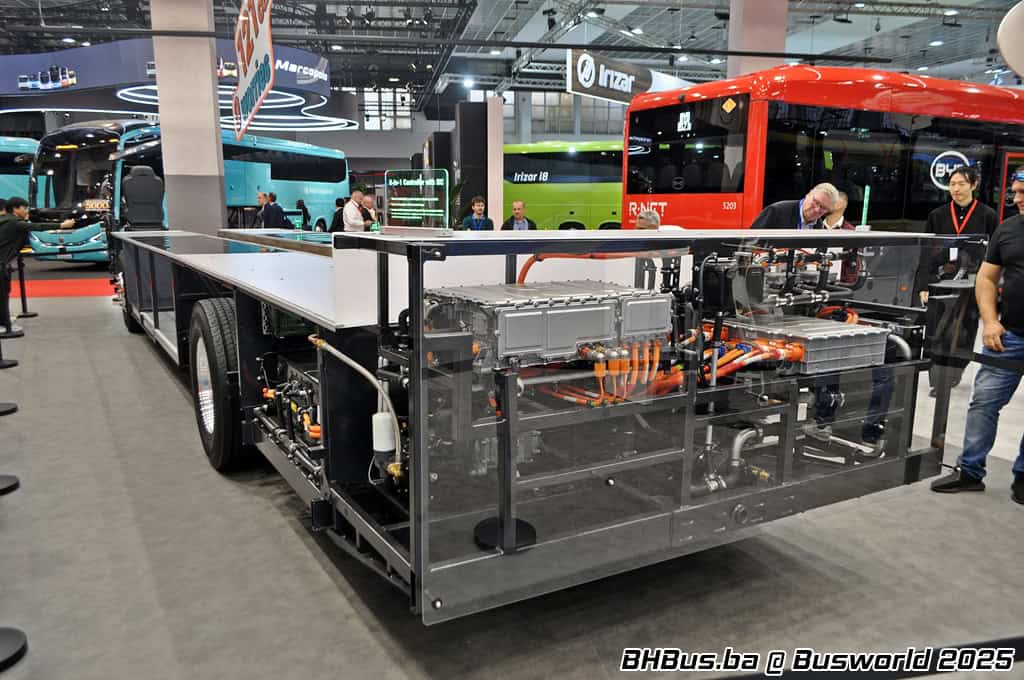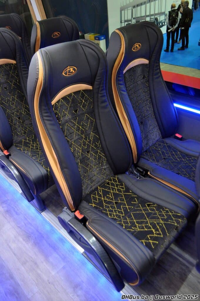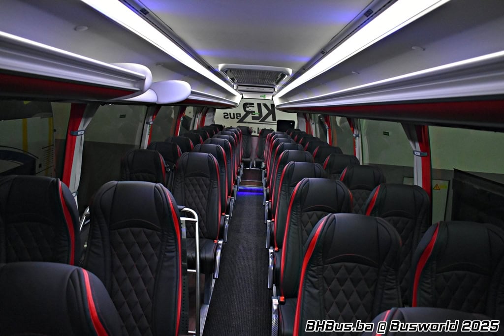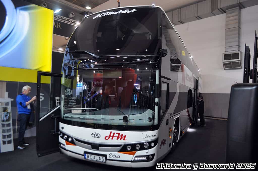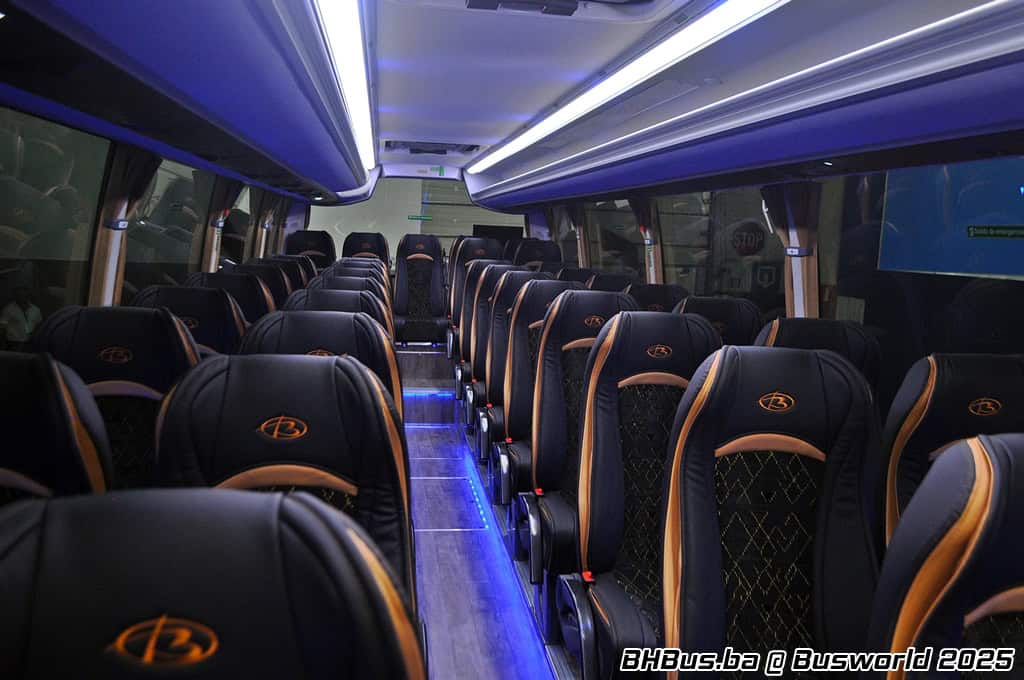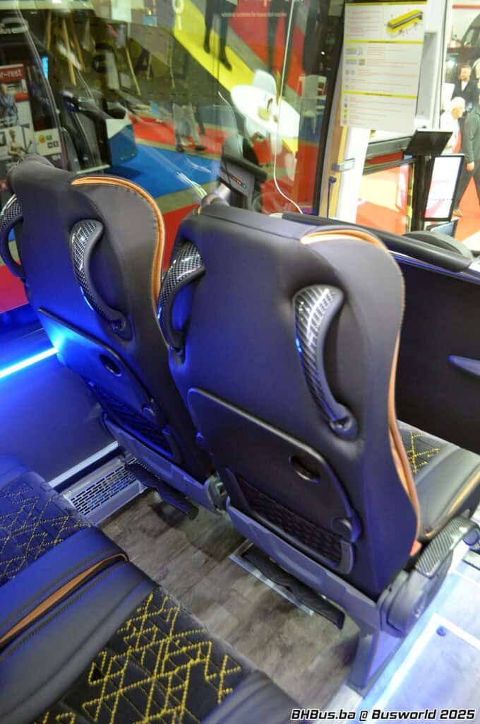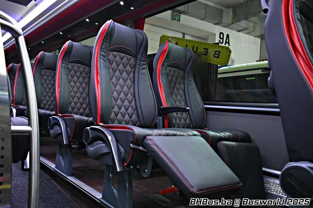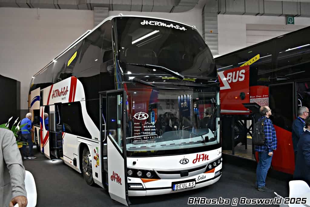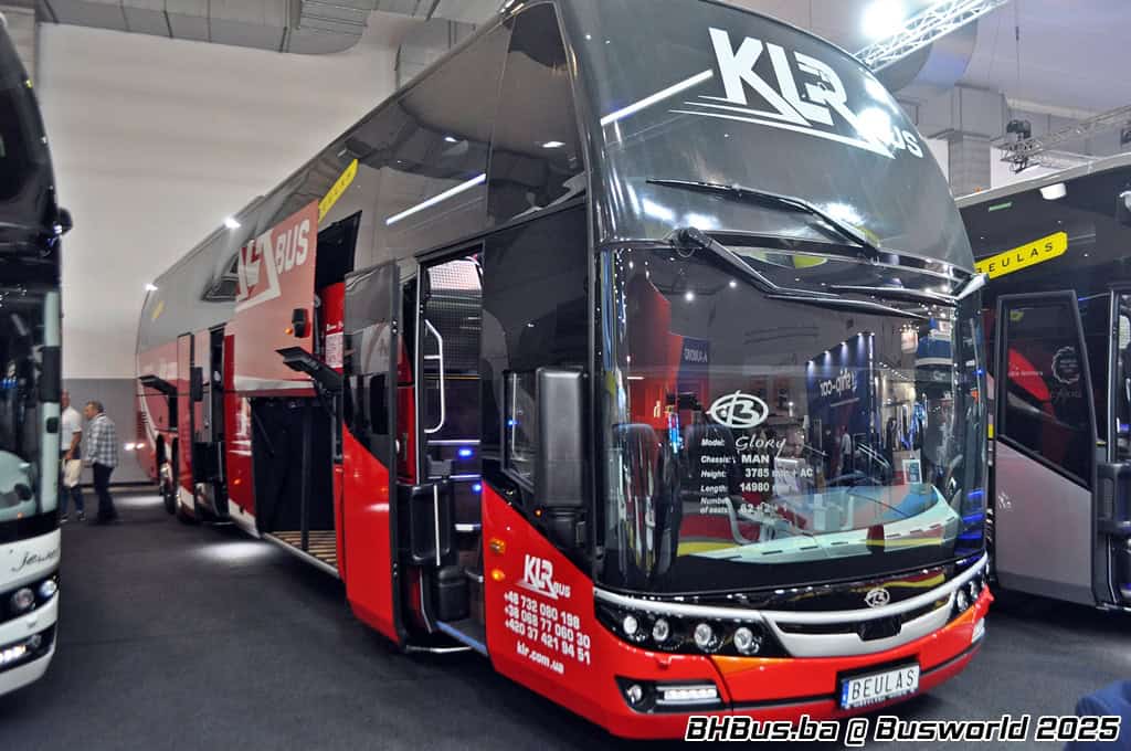 Sljedeći na listi je španski proizvođač vozila Beulas koji se ove godine predstavio sa tri vozila, a postavka je bila ista kao i na Busworld 2023 – Jewel, Glory i Cygnus. Svi modeli donijeli su neka značajna unaprijeđenja, koja je prije svega ogledaju u nedostatku klasičnih retrovizora. Predstavljeni dvospratni Jewel je bio na Scania šasiji i konfigurisan sa 82 sjedišta + vozač + suvozač. Vozilo je dužine 14,1 metar i za tu dužinu ima odličan kapacitet, ali je prtljažni prostor ono što je veliki plus. Naime, vozilo ima toliki prtljažni prostor da se kroz bočna vrata komotno može ući unutar prtljažnog prostora ili prevedeno u brojke – 13,13 m3. Od ostale opreme su tu još toalet, kuhinja, klima, dodatno grijanje i frižider. Model Glory predstavlja kategoriju tzv. “jedan i po spratni autobus” ili overdeker, gdje je vozač fizički odvojen od ostatka putničkog prostora. Konkurencija u ovom segmentu nije velika pa Beulas ovdje stoji prilično dobro. Predstavljeno vozilo je ukrajinskog prevoznika KLR bus i ima dužinu od 14,98 metara i ima MAN šasiju. Zahvaljujući izvedbi, ima kapacitet od 62+2+1 sjedišta uz napomenu da se dio iznad vozačke posade odlikuje VIP sjedištima. Najmanji model na štandu je bio Cygnus, koji je za razliku od prošlog sajma i dužine 10,5 metara, sada bio 9,8 metara dužine. Zajednička je ostala Scania šasija i motor, ali je kapacitet sjedišta povećan pa iznosi 39+1+1. Vrijedi istaći i da je ponio titulu španskog midibusa godine za 2025.
