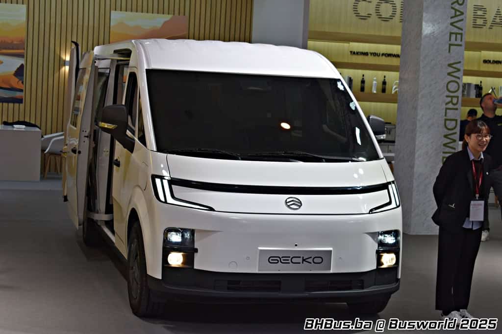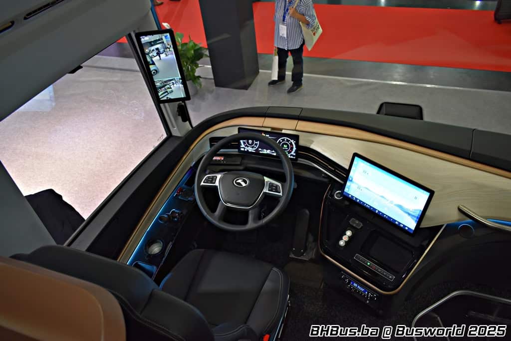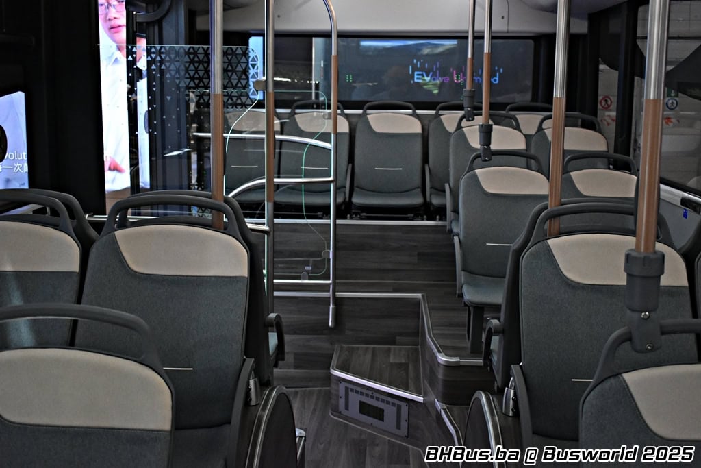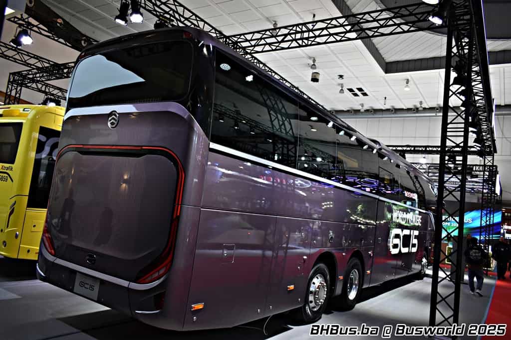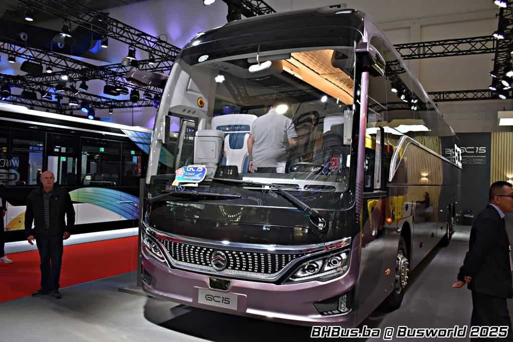 Ipak, sva pozornost je bila usmjerena na visokopodni električni autobus GC15. Radi se o vozilu dužine 14,8 metara kapaciteta čak 62 putnika. Interesantno je da je reklamiran kao električni turistički autobus, a na letku pored busa je klasifikovan kao Class I/Class II bus. Opremljen je baterijom proizvođača CATL i kažu da na jednom punjenju mogu preći 600 km. Vozilo ima dosta evropskih komponenti, a ni dizajn mu nije loš. Posebno treba pohvaliti diodnu rasvjetu ispod bočnih prozora sa vanjske strane što je svakako lijep dodatak koji sigurno po noći izgleda još ljepše. Nažalost, zbog velike gužve u vozilu, nismo bili u mogućnosti slikati unutrašnjost.