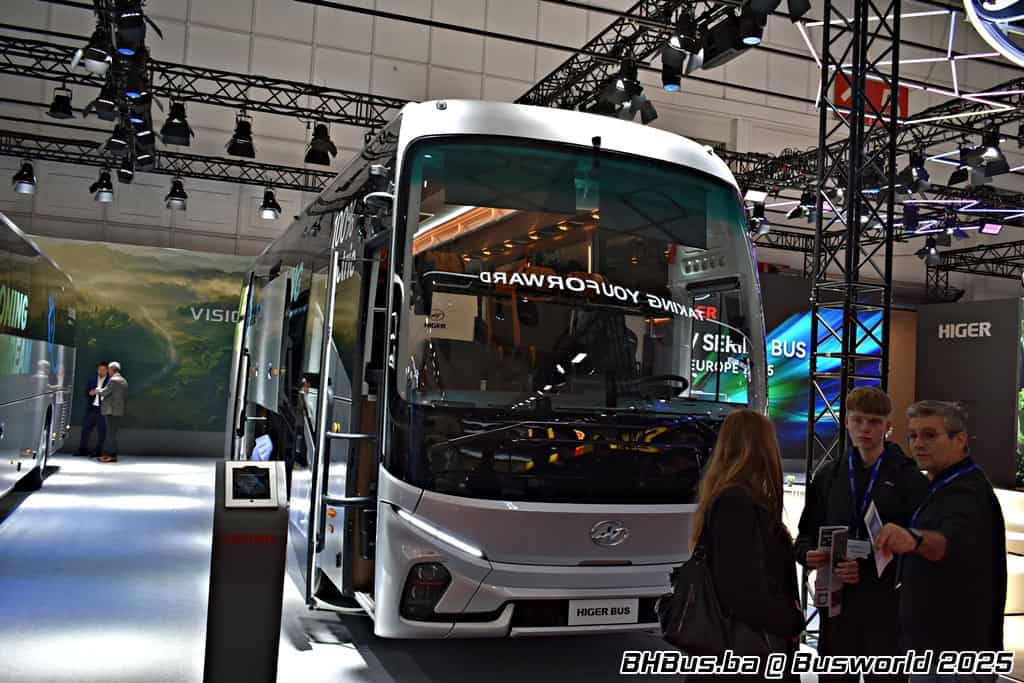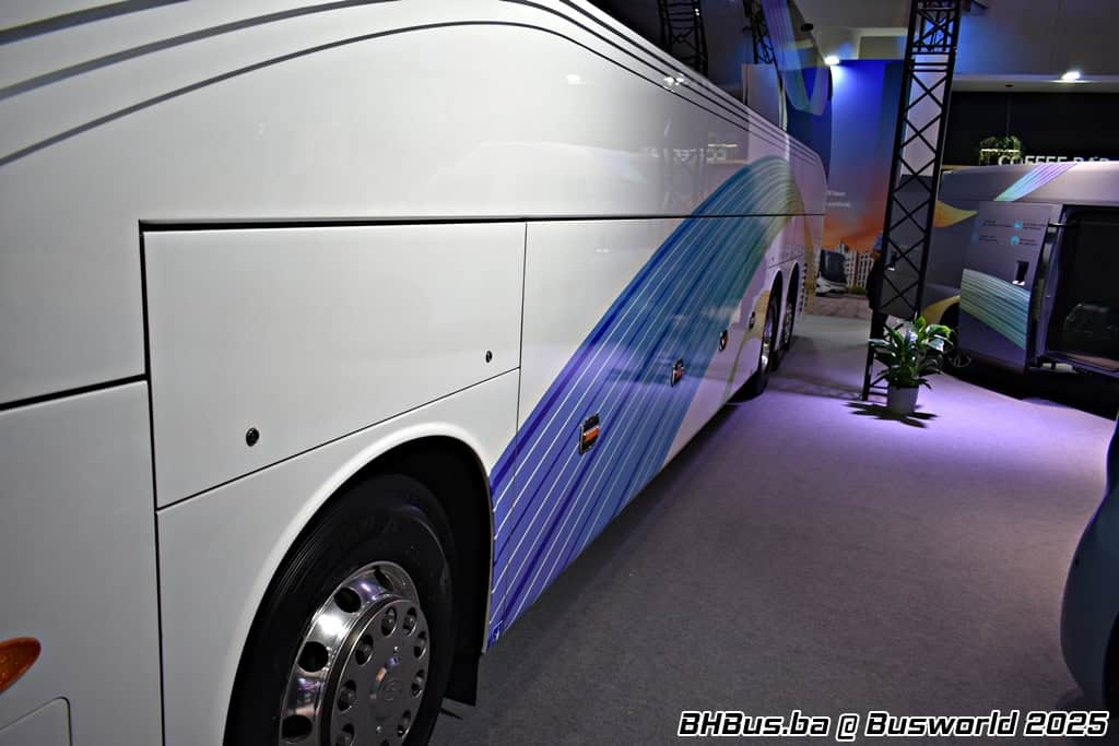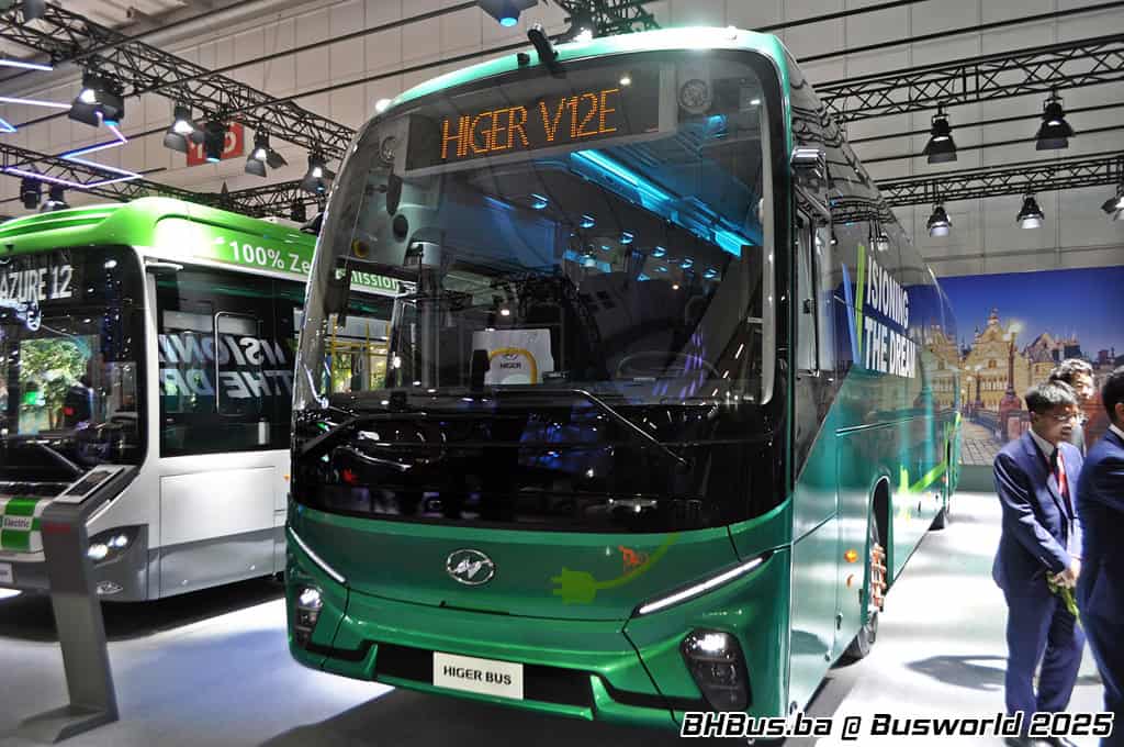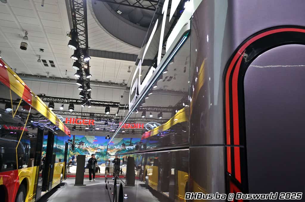 Još jedan kineski proizvođač vozila na kojeg smo se navikli u EU, ali i u BiH je Higer, uz napomenu da je za ovaj Busworld došao sa kompletnom električnom flotom koja se sastojala od četiri vozila koja su izložena na velikom štandu. Na sajmu je bio Higer Azure 12, gradski električni autobus kojeg smo i ranije viđali i izvještavali, ali preostala tri su bile premijere. Busworld Europe 2025 je vidio tri električna modela iz nove V serije — V12E, V12E Pro i V13E — što označava daljnji korak u širenju na evropsko tržište. Razvijana tokom tri godine i prilagođena evropskim standardima, serija ima modularnu arhitekturu, povećani kapacitet prtljaga i napredne kompozitne materijale za poboljšanje servisiranja i efikasnosti. U saradnji sa Scanijom, na njihovom štandu je bio izložen i sada već legendarni model Touring, ali o njemu više kada budemo pisali o Scaniji.