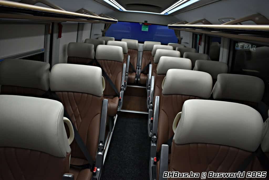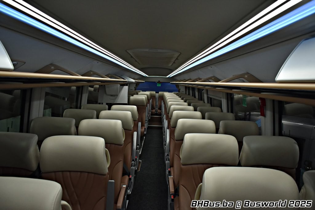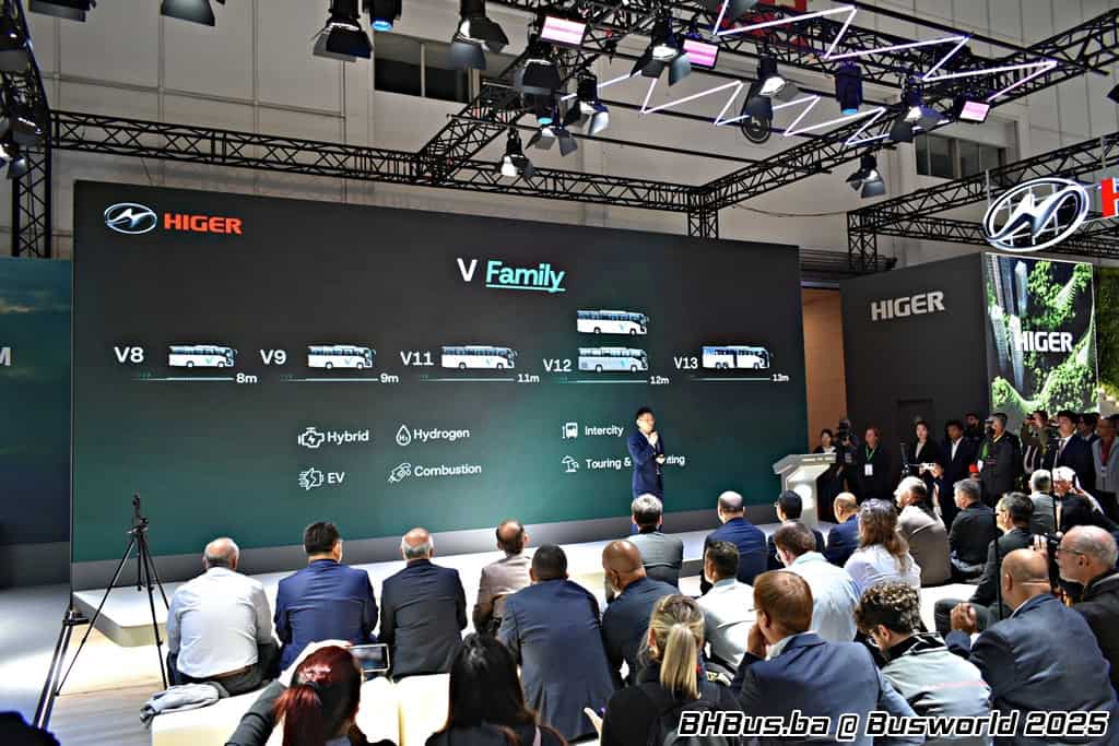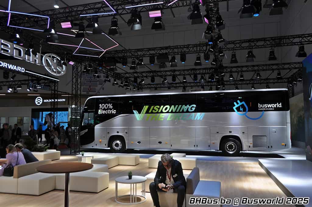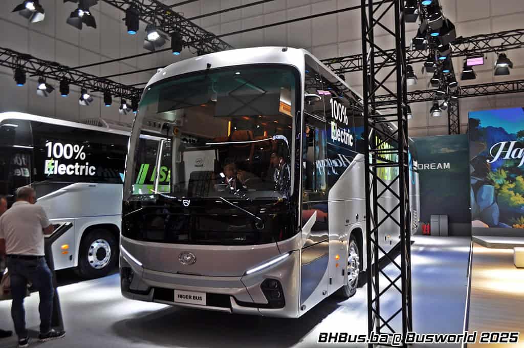 Još jedan kineski proizvođač vozila na kojeg smo se navikli u EU, ali i u BiH je Higer, uz napomenu da je za ovaj Busworld došao sa kompletnom električnom flotom koja se sastojala od četiri vozila koja su izložena na velikom štandu. Na sajmu je bio Higer Azure 12, gradski električni autobus kojeg smo i ranije viđali i izvještavali, ali preostala tri su bile premijere. Busworld Europe 2025 je vidio tri električna modela iz nove V serije — V12E, V12E Pro i V13E — što označava daljnji korak u širenju na evropsko tržište. Razvijana tokom tri godine i prilagođena evropskim standardima, serija ima modularnu arhitekturu, povećani kapacitet prtljaga i napredne kompozitne materijale za poboljšanje servisiranja i efikasnosti. U saradnji sa Scanijom, na njihovom štandu je bio izložen i sada već legendarni model Touring, ali o njemu više kada budemo pisali o Scaniji.
