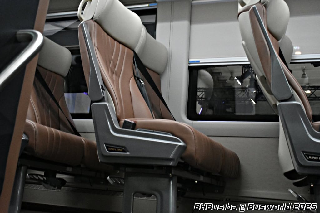 Veliku pozornost izazvao je i turistički električni autobus iz Merry Combo game proizvoda. Za razliku od prošlogodišnjeg IAA sajma u Hanoveru kada je predstavljen dvoosovinski model XMQ6127CYWBEV, na Busworldu je predstavljen troosovinac pojednostavljenog naziva – MC13E. King Long Merry Combo MC13E predstavlja luksuz, snagu i održivost u pokretu. I zaista, vozilo je dizajnirano i opremljeno u impresivnom stilu. Dizajniran je za udobnost na dugim relacijama i za vrhunsko iskustvo putovanja. Kao i sva King Long vozila i MC13E je opremljen CATL-ovim sistemom baterija visoke energije. Za razliku od prošlogodišnjeg dvoosovinca, na ovom troosovincu je urađeno dosta i na izmjeni unutrašnjeg dijela, posebno vozačkog prostora što je za pohvalu.