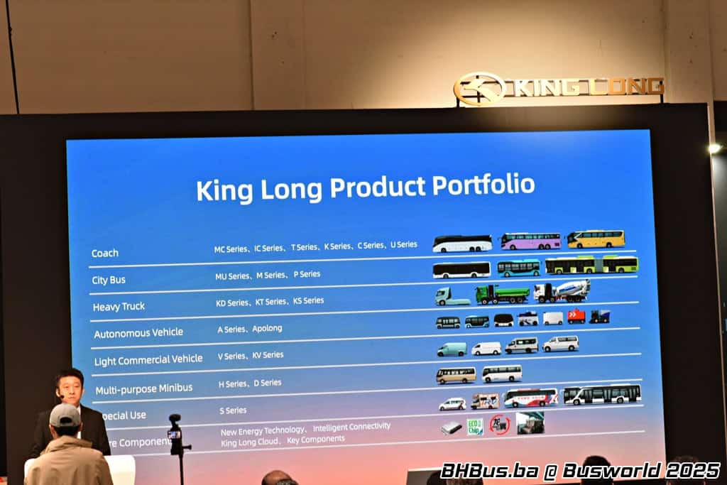 Da li ste znali da je King Long bio prvi proizvođač autobusa iz Kine koji je izlagao na Busworldu? Ove godine je imao zaista upečatljiv nastup, a ne kažemo ovo samo zbog lijepih hostesa na štandu. Busworld je shvaćen najozbiljnije pa su se na štandu našli A02 Autonomous Bus (koji je već u upotrebi na međunarodnom aerodromu Hong Kong i V8 Smart Van. Naravno, oba vozila na električni pogon. Na električni pogon su bila i preostala dva modela – King Long MU12E i King Long MC13E.