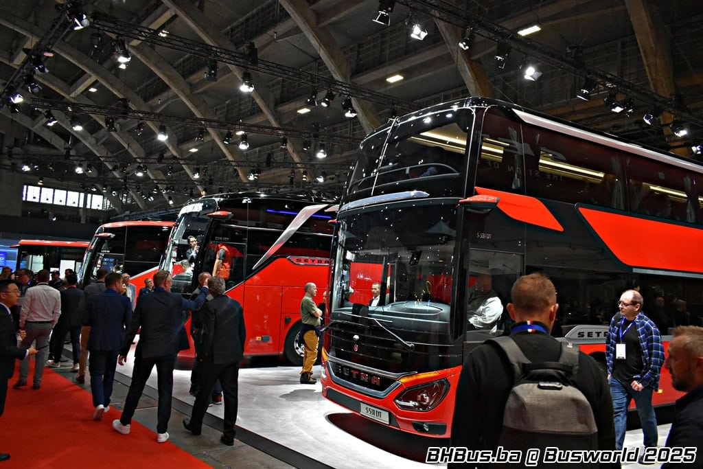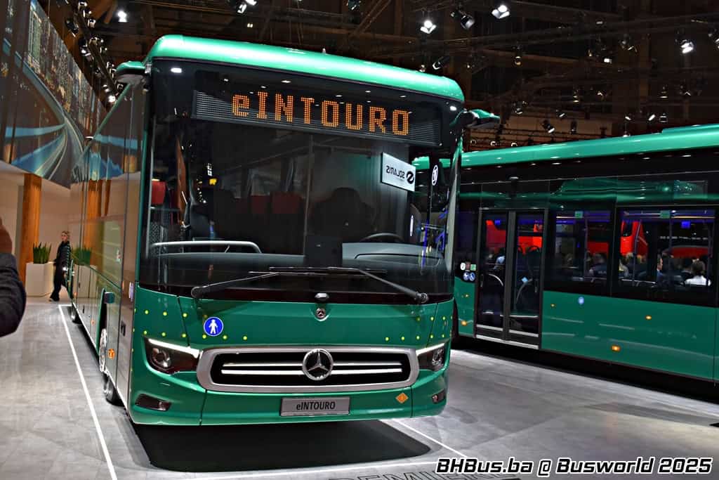 Na sajmu Busworld Europe 2025 u Briselu, Daimler Buses je imao svjetsku premijeru potpuno električnog Mercedes eIntouro-a, debi nove generacije NMC4 baterija za eCitaro, te slavlje dvije velike godišnjice modela. Uz kompletnu Setra ponudu – od MultiClass niskopodnog autobusa do TopClass dvospratnog autobusa – kompanija je istakla i svoj rastući portfolio e-usluga i digitalnih rješenja.