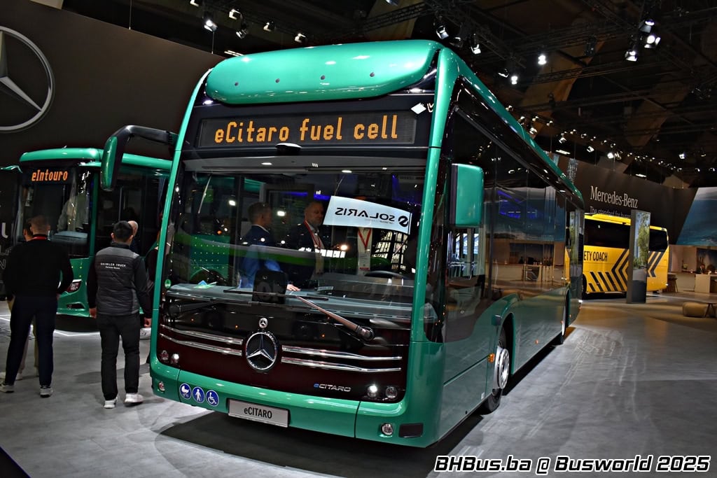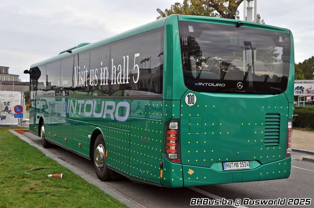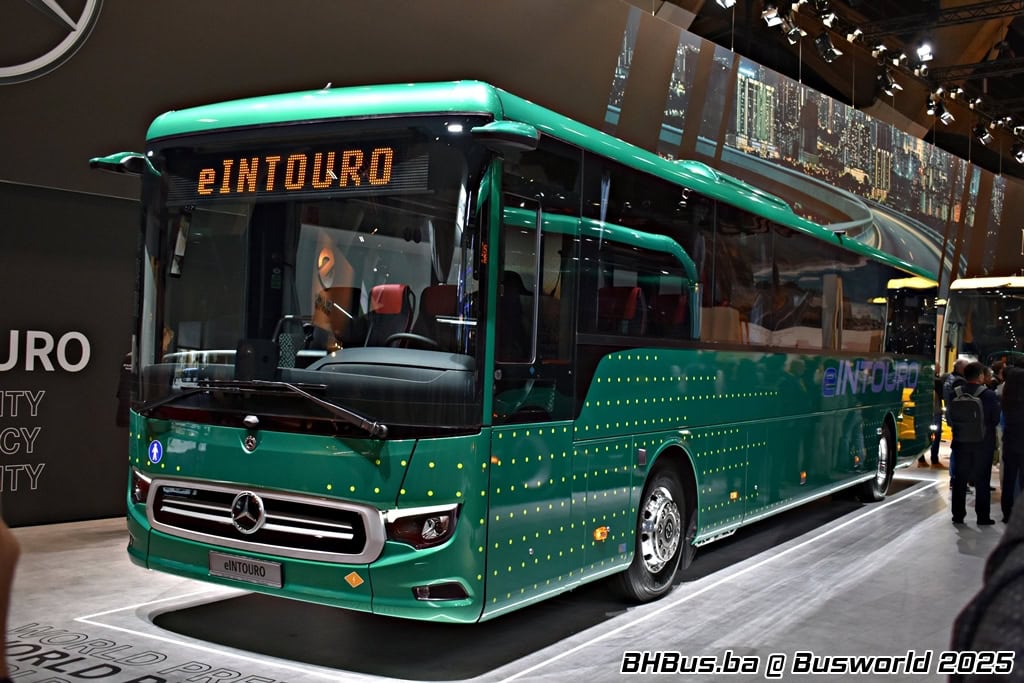 eIntouro, ranije predstavljen u novembru 2024. godine, označava ulazak Daimler Buses u međugradski transport na baterije i električnu energiju, dostupan u dvije dužine i sa bežičnim ažuriranjima softvera. Jedan primjerak je bio prezentovan i vani kao demo vozilo za zainteresirane, baš kao i eCitaro G sa pogonom na vodik. eCitaro sa NMC4 baterijama obećava veću gustinu energije, duži domet i produženi vijek trajanja, sa kapacitetom punjenja do 300 kW. Također, na štandu je bio i Mercedes Tourismo Safety Edition, a jedan primjerak je bio i na vanjskom izložbenom dijelu.