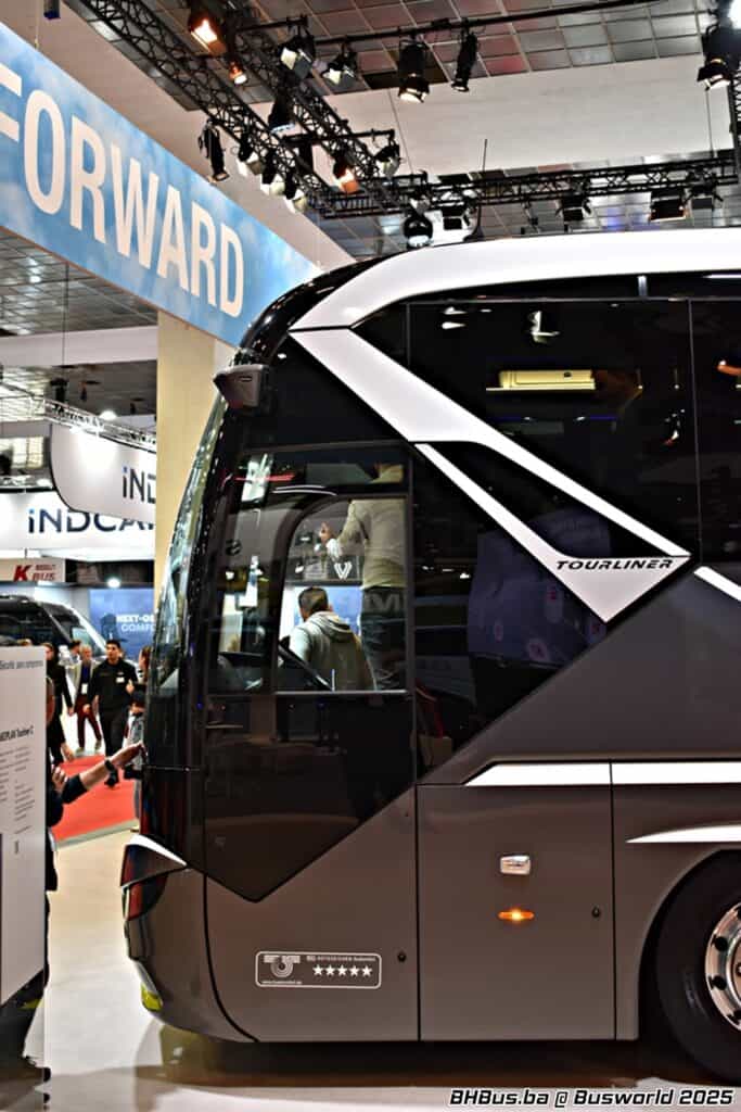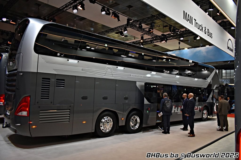 Iako Neoplan, po ulozi luksuzni brend MAN grupe, već par godina igra podređenu ulogu uvijek je lijepo vidjeti njihove modele, a za ovaj Busworld su bila pripremljena posebna vozila. Naime, bili su izloželi Skyliner i Tourliner, ali je Skyliner bio iz posebne serije Auwärter Edition dok je Tourliner bio serija Safe and Secure. Vrijedi istaći da je vani bio izložen i još jedan Tourliner u seriji Auwärter Edition, dok se Skyliner iz iste serije koristio i kao demo vozilo za zainteresirane. Izloženi Tourliner je bio u dvoosovinskoj verziji od 13 metara i osim sigurnosnih značajki, njegova glavna karakteristika je bila unutrašnja oprema iz paketa Individual i VIP putnički salon sa 2+1 sjedištima namjenjena posebnim prevozima. S druge strane, o Skyliner Auwärter Edition ste imali prilike čitati i na našem portalu, ali je čitati jedno, a biti u vozilu drugo. Čista perfekcija na tri osovine, sa posebnom šemom, posebnom opremom i posebnim osjećajem.