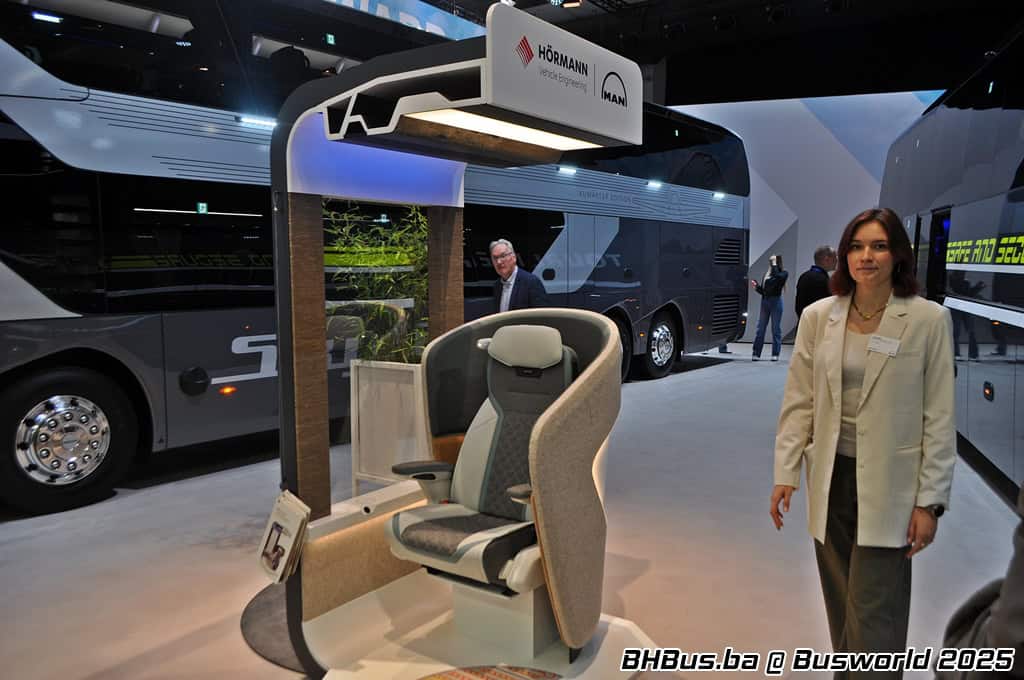Kada smo spomenuli sjedišta, možemo spomenuti da je na MAN štandu izlagala i kompanija HÖRMANN Vehicle Engineering. Oni su prezentovali kako bi trebalo izgledati sjedište u VIP izvedbi napravljeno od recikliranih i biomaterijala. Jako dobar koncept, ali koji je ipak prilagođeniji avio saobraćaju nego autobuskom. Također, na štandu je bila izložena i maketa vozila budućnosti tj. Neoplan eCoach 2040 Future Concept. Na prvi pogled očigledno se radilo o maketi nastaloj na obrisima modela Starliner, pa da li nam se to sprema i električni Starliner? Saznat ćemo u godinama koje dolaze…