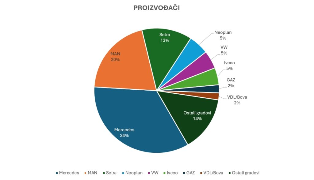 Učešće je uzelo 24 proizvođača vozila, što je dva više nego godinu prije. Ubjedljivo je najviše registrovano Mercedes vozila i to 132, jedno više u odnosu na prošlu godinu. Pobjedu može zahvaliti i velikom broju Sprinter kombija, velikom broju Integro/Intouro autobusa koji su uvezeni kao polovna vozila, Citaro autobusima koji su prvi izbor prevoznika u Banja Luci, ali i odličnim rezultatima prodaje novog Tourisma. Na drugom mjestu je ostao MAN sa 78 vozila, više nego prošle godine (71), ali ipak nedovoljno za prvo mjesto. Najviše različitih proizvođača smo imali registrovanih u februaru i decembru – po 12, dok je najmanje, logično, bilo u januaru i junu – po sedam. Mercedes je ubilježio i najviše registracija u jednom mjesecu i to za septembar kada je registrovano 23 vozila sa zvijezdom. Mercedes, Setra i MAN se mogu pohvaliti da su svaki mjesec tokom prošle godine imali barem po jedno registrovano vozilo.