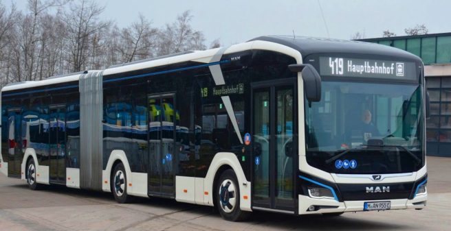 Sada, skoro osam godina kasnije, Braunschweig ide naprijed sa električnim autobusima. Od sredine januara 2022. godine, BSVG testira električni zglobni autobus tipa MAN Lion’s City 18 E na svojim linijama 411, 419 i 429. Njegov operativni raspored je namjerno osmišljen tako da vozilo može preći posebno veliki broj kilometara, pokazujući na taj način domet koji može postići. Na primjer, u subotu bi trebalo preći 278 kilometara za 20 sati na linijama 419 i 429. Baterije imaju kombinovani kapacitet od 640 kWh. Pune se isključivo tokom noći u remizi Lindenberg. S obzirom da trenutno ne postoji stalno instaliran “noćni punjač”, već samo mobilni punjač snage od samo 50 kW, BSVG očekuje da će autobus morati ostati priključen oko osam sati za potpuno punjenje.