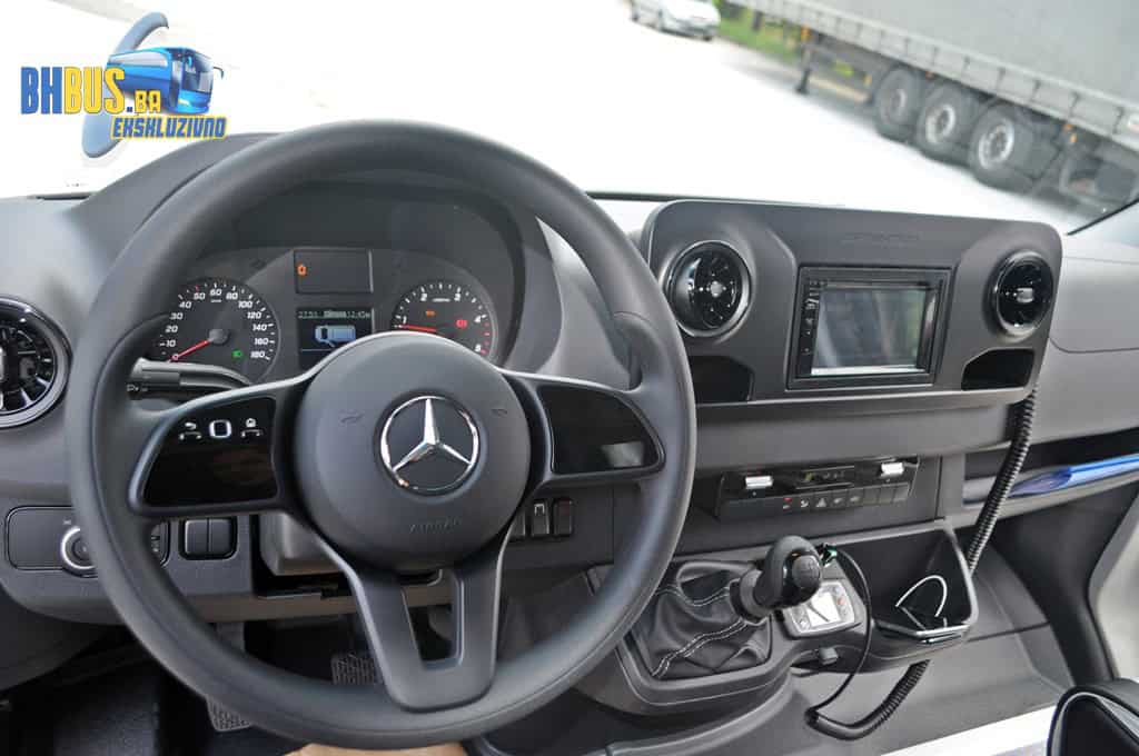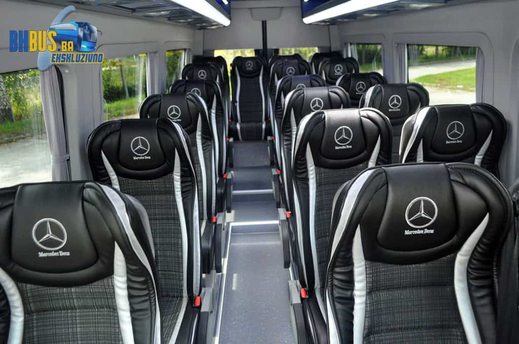 U unutrašnjost se udobno može smjestiti 20 putnika pored vozača koji će u svakom trenutku na raspolaganju imati sjajnu opremu i udobnost svojstvenu samo Mercedesu. Sva sjedišta su turistička sa naslonom na obaranje, sklopivim naslonom za ruku, stolićem i mrežicom za lične stvari. Uz to, svako sjedište ima i dupli USB priključak kao i Mercedesov amblem na naslonu za glavu. Cijela unutrašnjost vozila je urađena u luksuznijoj kombinaciji tkanine i kože.
