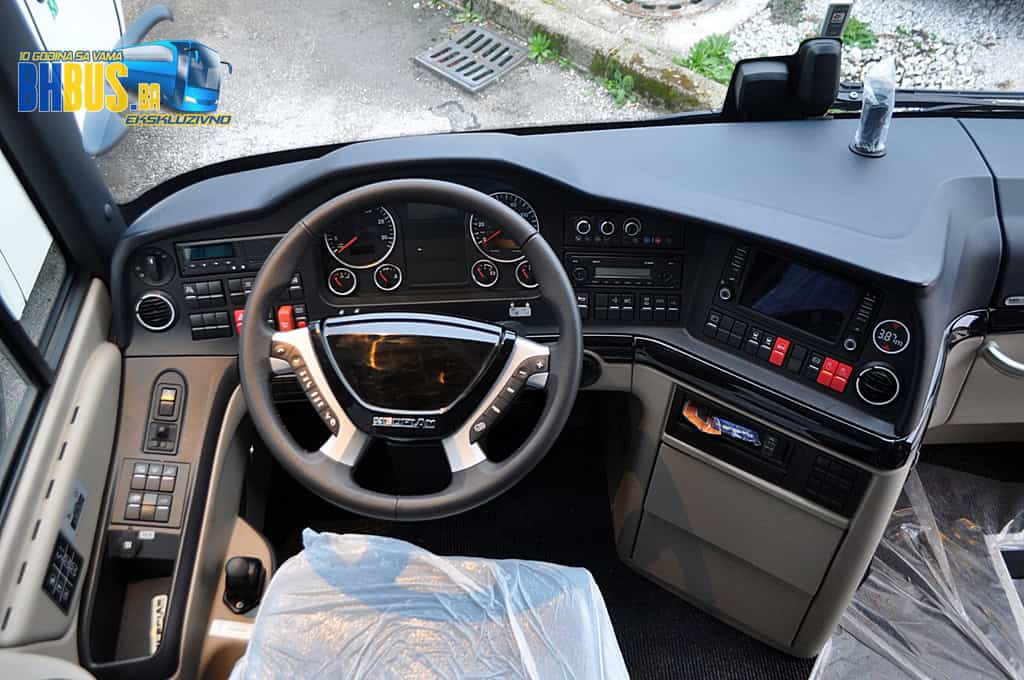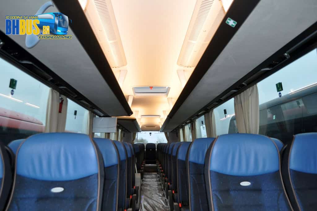 Osim vozača i suvozača/vodiča, autobusi mogu primiti 49 putnika. Spomenuli smo da je u unutrašnjosti jedina razlika u izvedbi sjedišta, međutim tip je isti – Kiel Caresso. Sjedišta u jednom autobusu su u plavoj nijansi dok su u preostala dva u zlatnoj izvedbi. Sva sjedišta su u kombinaciji tkanine i kože te imaju sklopivi stol, podesive oslonce za noge i ruke, mrežice za novine, a sjedišta sa strane prolaza se mogu izvući za dodatni komfor. Unutrašnjost vozila je urađena u imitaciji parketa što je još jedna značajka koja pruža premium iskustvo vožnje u ovim vozilima.