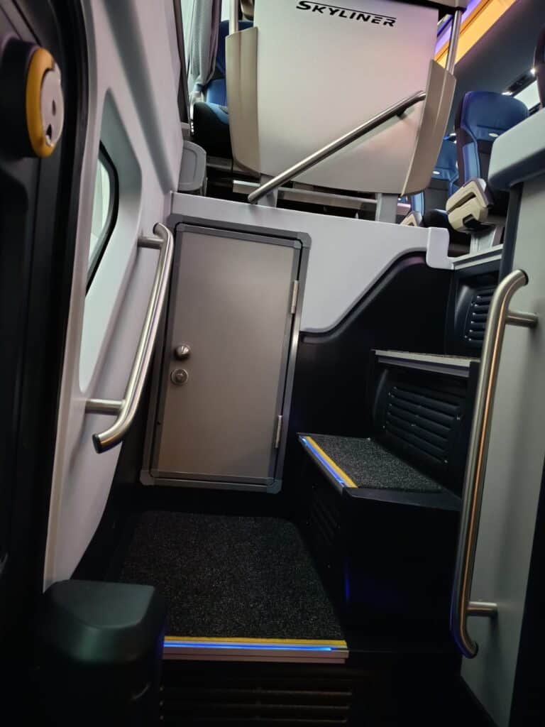 Tokom putovanja putnicima će biti na raspolaganju toalet na donjem spratu kao i moderna i odlično opremljena kuhinja koja uključuje frižider, sudoper, bojler i kafe aparat. Za odgovarajuću temperaturu u vozilu u svakom trenutku će biti zaduženi sistem grijanja i Konvekta klima uređaj. Dodatnu dimenziju usluge putnicima će pružiti 230 V utičnice na sjedištima te još nekoliko dodatnih koje su raspoređene na nekoliko lokacija u vozilu. Za reprodukciju audio i video materijala će biti zadužen standardni MMC sistem – Multi Media Coach Advanced koji se nalazi na svim MAN i Neoplan vozilima. U sklopu audio opreme se nalaze dva mikrofona, a interesantno je da postoji odvojena regulacija glasnoće radio uređaja za donji i gornji sprat.