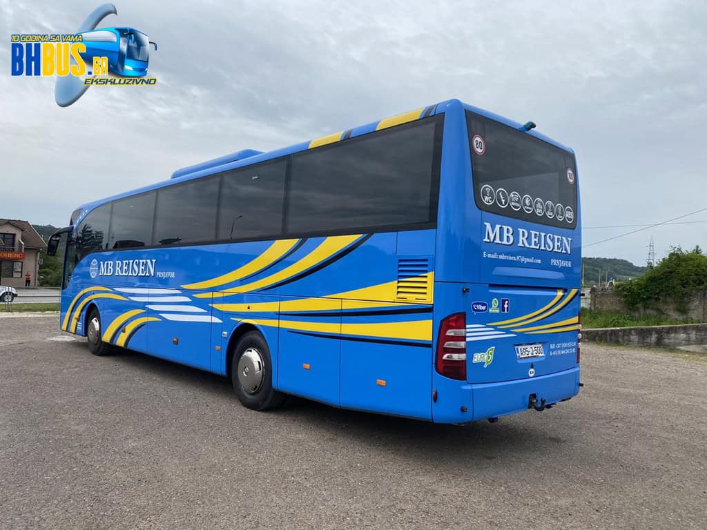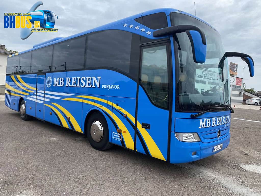 Kompanija MB Reisen osnovana je 1997. i bavi se redovnim, ali i vanrednim prevozom. Obavljaju već duži niz godina međunarodnu liniju za Austriju, tačnije Prnjavor – Bregenz, ali se njihova vozila mogu vidjeti i širom BiH te regiona na vanrednim vožnjama također. Do sada je vozni park imao dva člana: Setra 315 GT-HD i Mercedes Sprinter, a novopristigli Mercedes Tourismo je treće vozilo u voznom parku. Priliku da predstavi vozilo imao je direktor firme gospodin Aleksandar Tomić.Tourismo je prekrasne plave boje, a dodatno je ukrašen sa žutim i bijelim motivima te natpisom kompanije u bijeloj boji. Vozilo je proizvedeno 2009. godine i imao je oko 750.000 pređenih kilometara po dolasku u novi dom. Logično, opremljen je domaćim Mercedesovim motorom snage 300 kW ili 408 KS te ispunjava Euro 5 norme ispušnih gasova. Da vožnja prođe udobno, ali i ekonomično pobrinut će se ekonomični ručni mjenjač sa šest brzina. Rezervoar za gorivo iznosi 480 litara, dok je kapacitet AdBlue rezervoara oko 60 litara.