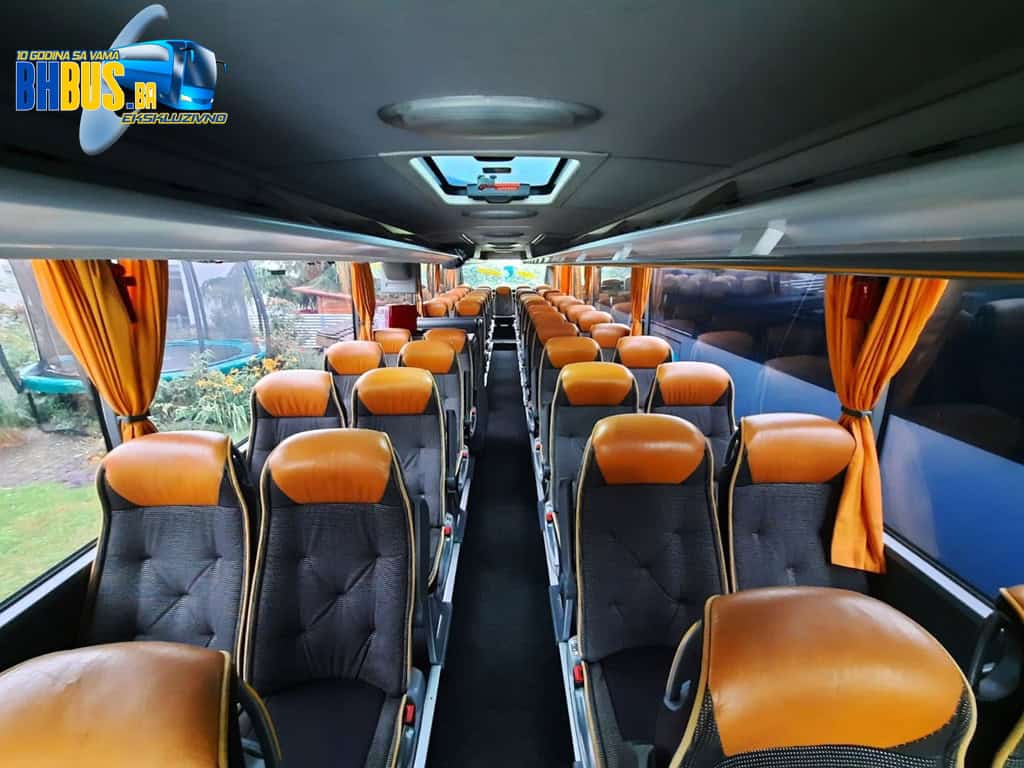 Kapacitet vozila je 49+2+1, što je uobičajeno za ovaj tip vozila na dvije osovine. Putnicima će na raspolaganju biti udobna sjedišta u turističkoj Mercedesovoj izvedbi Lux Line sa svim potrebnim dodacima. Međutim, MB Reisen je mislio na svoje putnike, pa će im na raspolaganju biti i dodatni USB priključci te utičnice od 220 V koji se nalaze na više mjesta u autobusu. Pod je urađen u standardnoj sivoj boji i izvedbi sa protukliznom oblogom. Ovisno od vremenskih uslova, za optimalnu temperaturu pobrinut će se klima uređaj te Webasto grijanje. Pošto se radi o vozilo namjenjenom za duge linije i turistički prevoz audio i video oprema je standard. Pored mikrofona tu se nalaze i Bosch audio sistem uz dvd player i dva LCD monitora. Vozilo od opreme posjeduje još i dva frižidera, kuhinju i toalet.