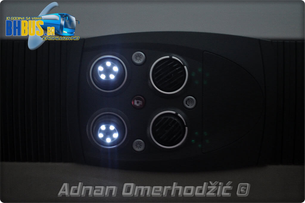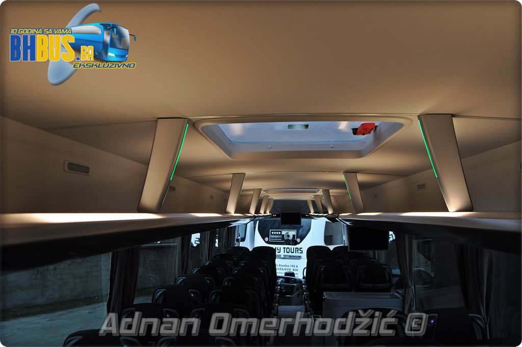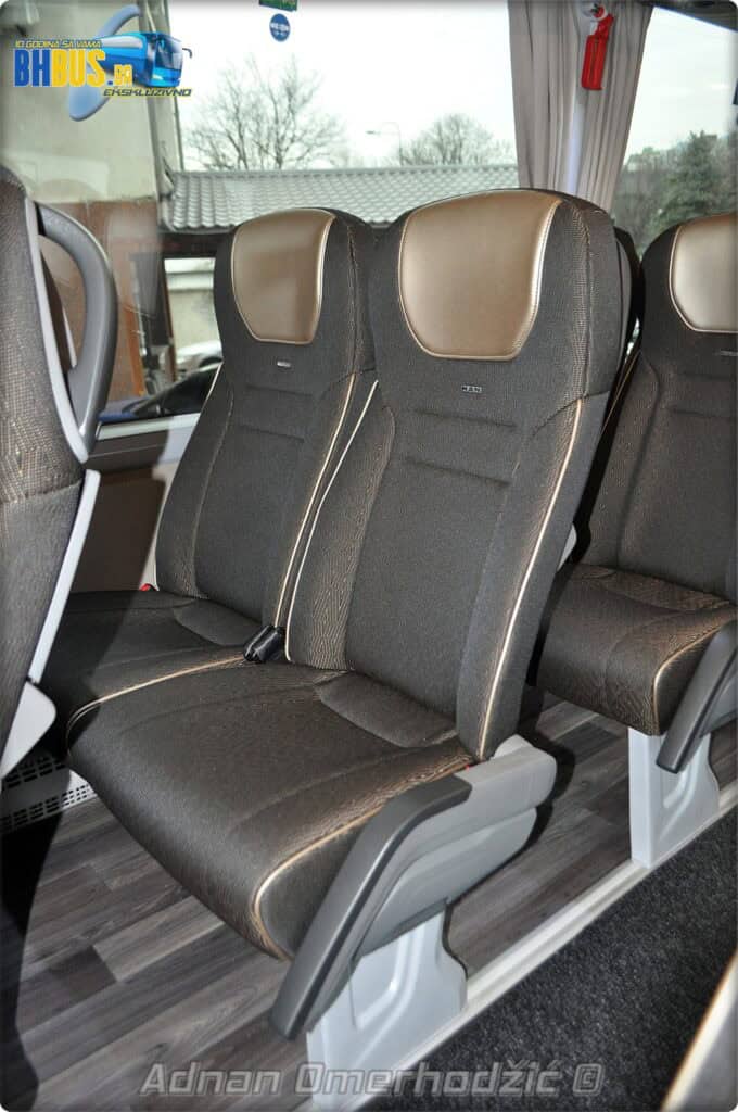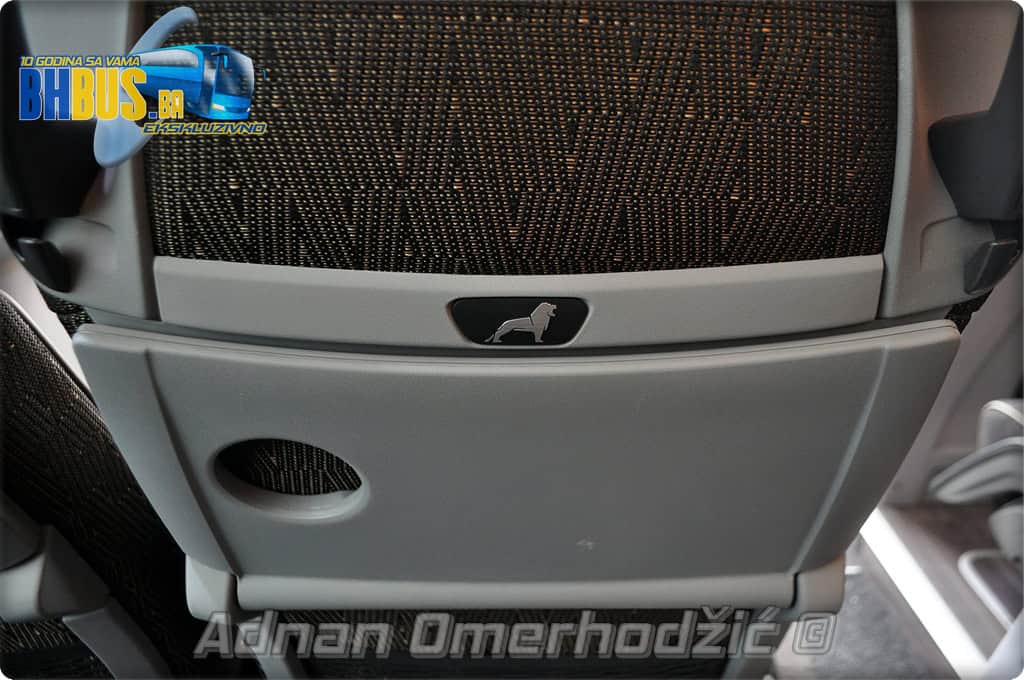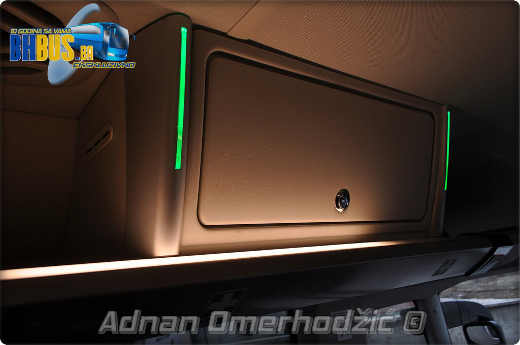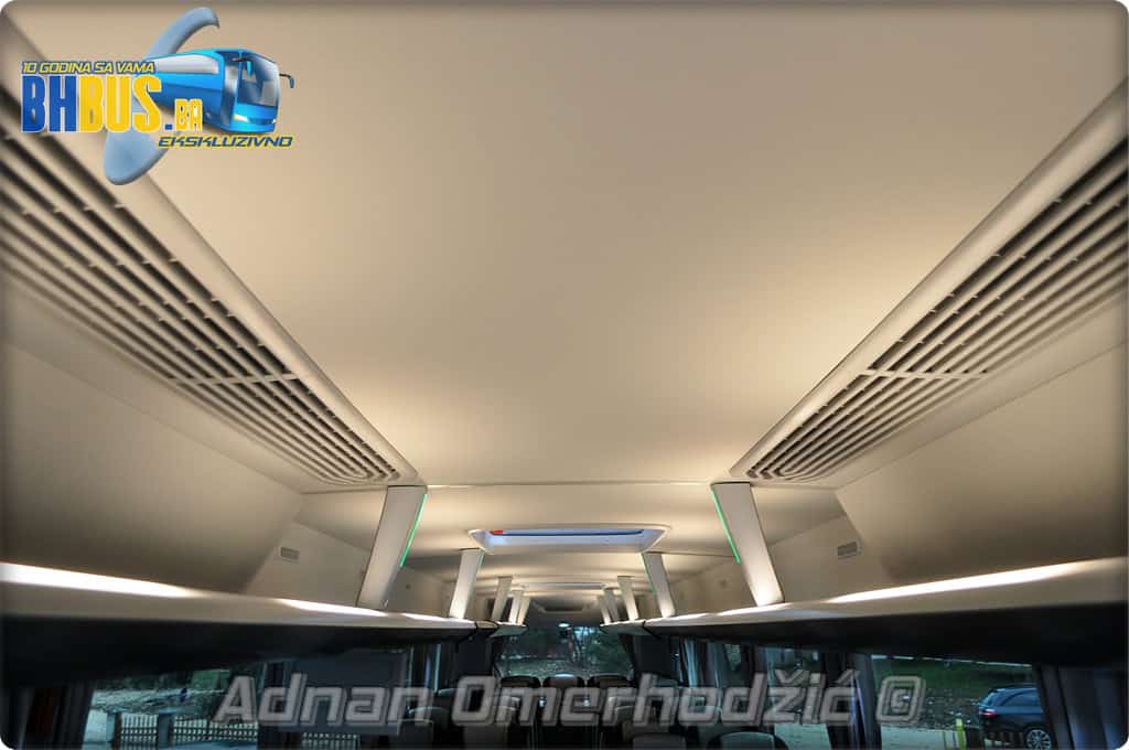 U unutrašnjost se, osim vozača i suvozača/vodiča, može smjestiti ukupno 49 putnika što je i maksimalan broj za ovaj tip autobusa. Sjedišta su proizvođača Kiel i to model ComfortLine BasicPlus u kombinaciji tkanine sa kožnim naslonima za glavu. Sjedišta su opremljena sa sigurnosnim pojasevima u dvije tačke vezanja, preklopnim stolićem, naslonom za ruke i naslonom za noge. Sjedišta do hodnika se mogu izvlačiti bočno čime se dobija dodatni komfor tokom putovanja, a sva sjedišta na naslonu imaju ušiven i MAN logo. Naravno, za dodatnu zabavu tokom putovanja, putnicima će na raspolaganju biti i audio/video oprema sa dva LCD monitora i standardni MMC – Multi Media Coach Advanced sistem. Od ostale opreme možemo spomenuti LED unutrašnju rasvjetu, pod u imitaciji parketa, klimatiziranu kabinu za odmor vozača kod drugih vrata, toalet sa senzorom dima, mikrofoni, frižider u prednjem dijelu vozila te sisteme klimatizacije i grijanja. Neizostavni dio opreme je i inverter sa nekoliko 230 V utičnica te USB prikljčci.