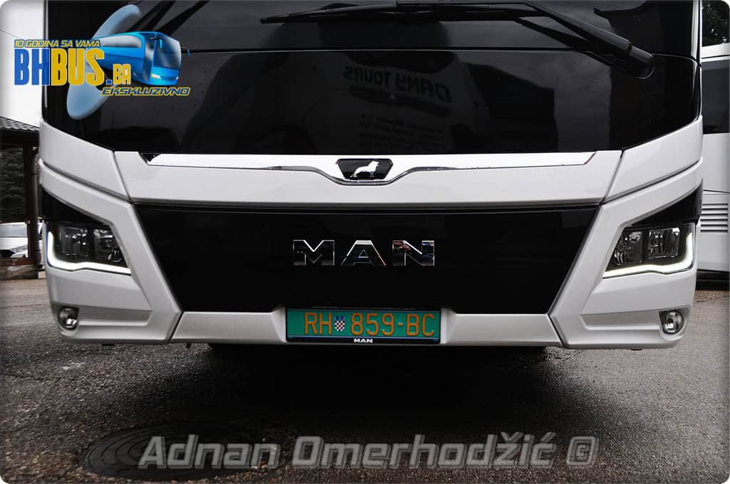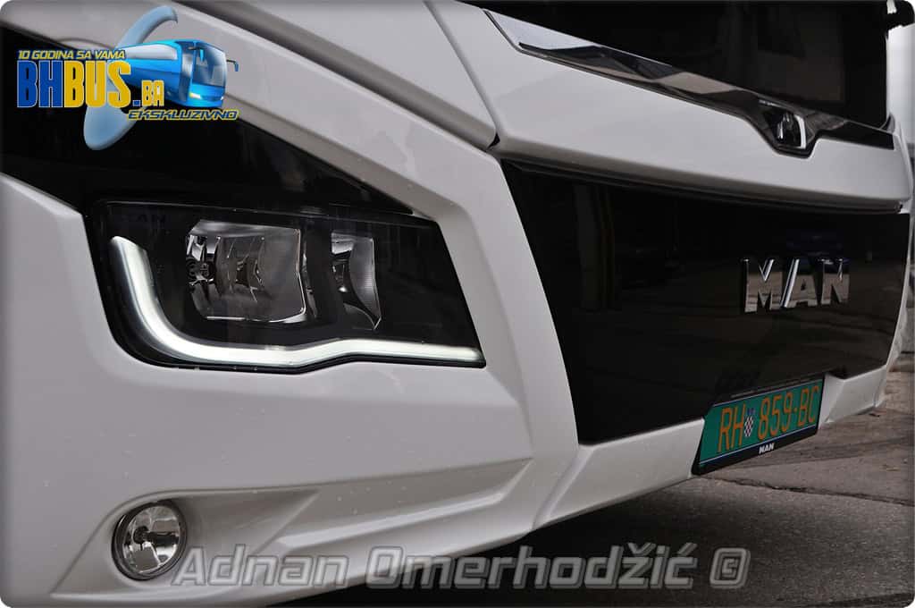 Autobusu snagu daje već provjereni MAN motorom najnovije Euro 6E generacije. Maksimalna snaga iznosi 324 kW tj. 440 konjskih snaga uz automatski MAN TipMatic mjenjač od 12 brzina i sa ZF intarderom. Umjesto nekadašnjeg prekidača za mjenjanje brzine, sada svi MAN autobusi imaju upravljanje mjenjačem preko ručice na stubu volana. Vanjski izgled autobusa osim spomenute boje karakterišu i MAN ratkape nove generacije u boji vozila te crni retrovizori i crni poklopac motora. Prednja i zadnja rasvjeta je kombinacija LED i halogenih svjetala, a prednji kraj krasi još i crna maska sa MAN slovima iznad koje se nalazi i lajsna sa prepoznatljivim lavom. Radi se o klasičnom dvoosovinskom autobusu čiji bočni poklopci prtljažnika su izolirani i imaju paralelogramsko otvaranje. Kapacitet rezervoara dizela je maksimalni i iznosi 705 litara, a rezervoara za AdBlue 60 litara. Kada pričamo o kapacitetima, da spomenemo da je kapacitet prtljaga 10 m3 (uključujući i police za ručnu prtljagu), što je sasvim dovoljno s obzirom da se kompanija bavi isključivo vanlinijskim prevozom. Ipak, za svaki slučaj tu su i nosači za skibox ukoliko bude trebalo još dodatnog prostora.