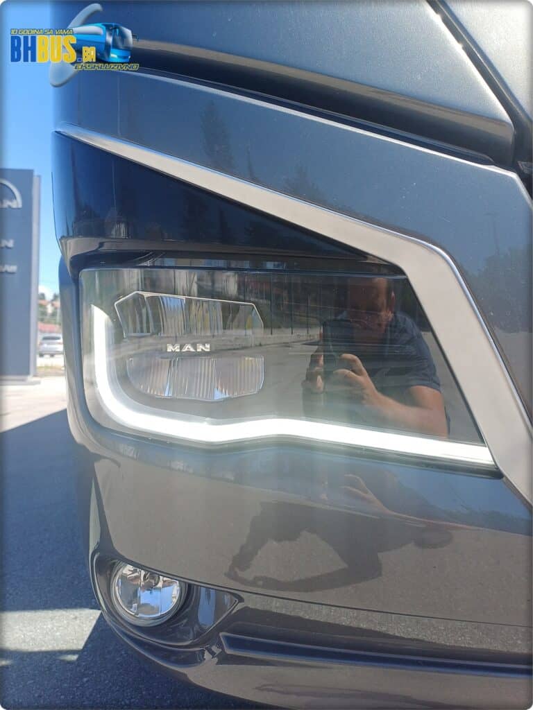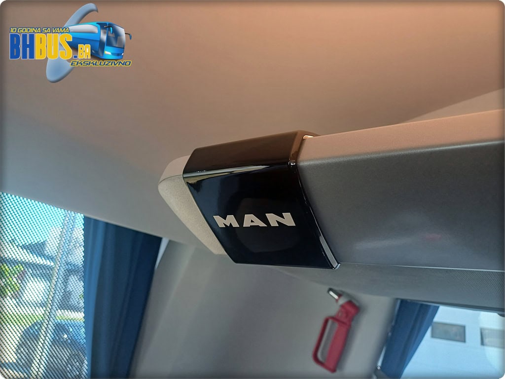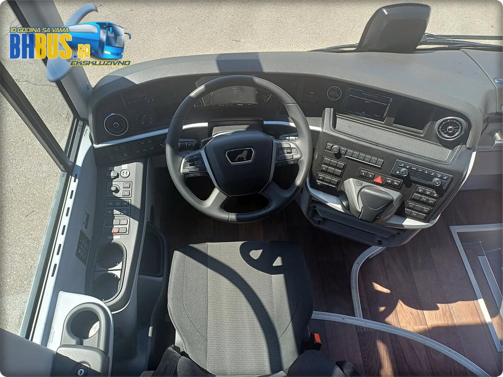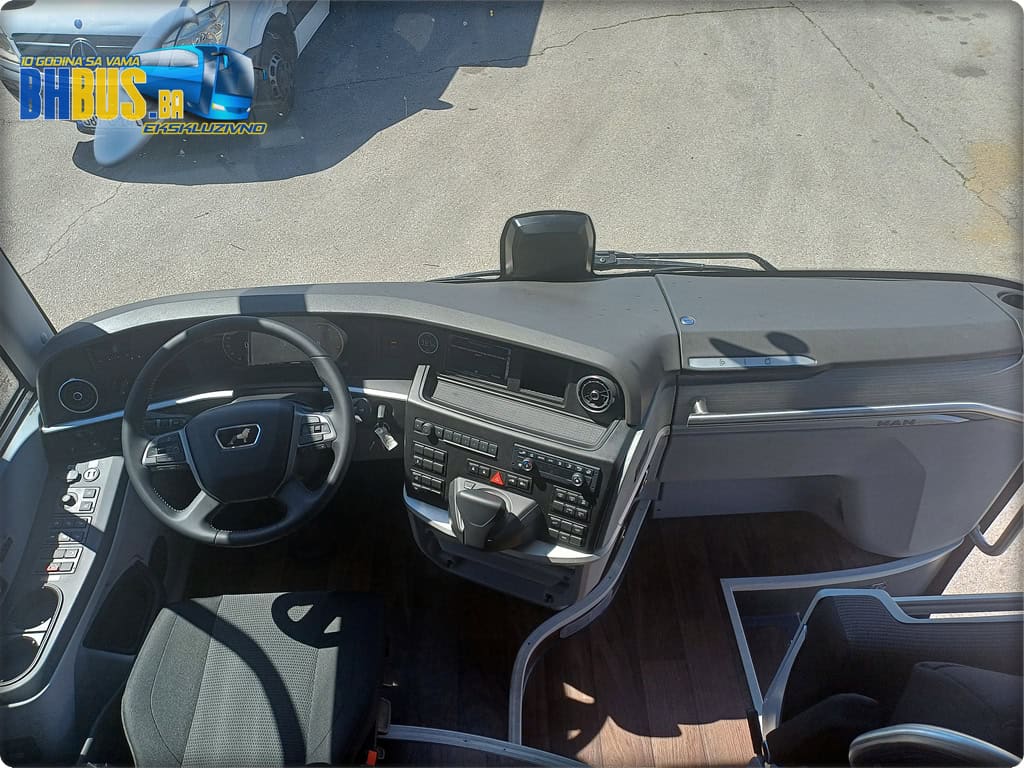 Vozaču će biti na raspolaganju udobno i prilagodljivo ISRI sjedište sa mikrofonom, pojasom, naslonom za ruke i opcijama grijanja te hlađenja. Glavni dio zauzima redizajnirani multifunkacionalni kožni volan sa logom legendarnog Lava. Jedna od novina ovog autobusa u odnosu na prošlogodišnji troosovinac je i 12-inčni digitalni kokpit te novi okretni prsten MAN SmartSelect, preko kojeg se rukuje infotainment sistemom. Ovaj prsten omogućava ciljan unos bez skretanja pozornosti čak i na neravnim cestama.