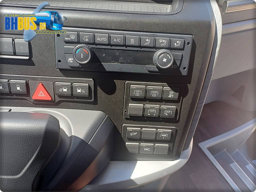 Putnicima će na raspolaganju biti i MMC sistem – Multi Media Coach Advanced sa 7-inčnim zaslonom. Od ostale audio i video opreme možemo spomenuti dodatni mikrofon za vodiča/suvozača i dva monitora od 19 inča. Naravno, ovisno od vremenskih uslova i zahtjeva putnika na raspolaganju je i Konvekta sistem klime i grijanja uz nezaobilazni frižider kapaciteta 56 litara koji se nalazi u prednjem dijelu vozila. Za još bolji ugođaj tokom putovanja, kompanija Karupović se opredjelila da svaki red sjedišta ima i dupli USB priključak.