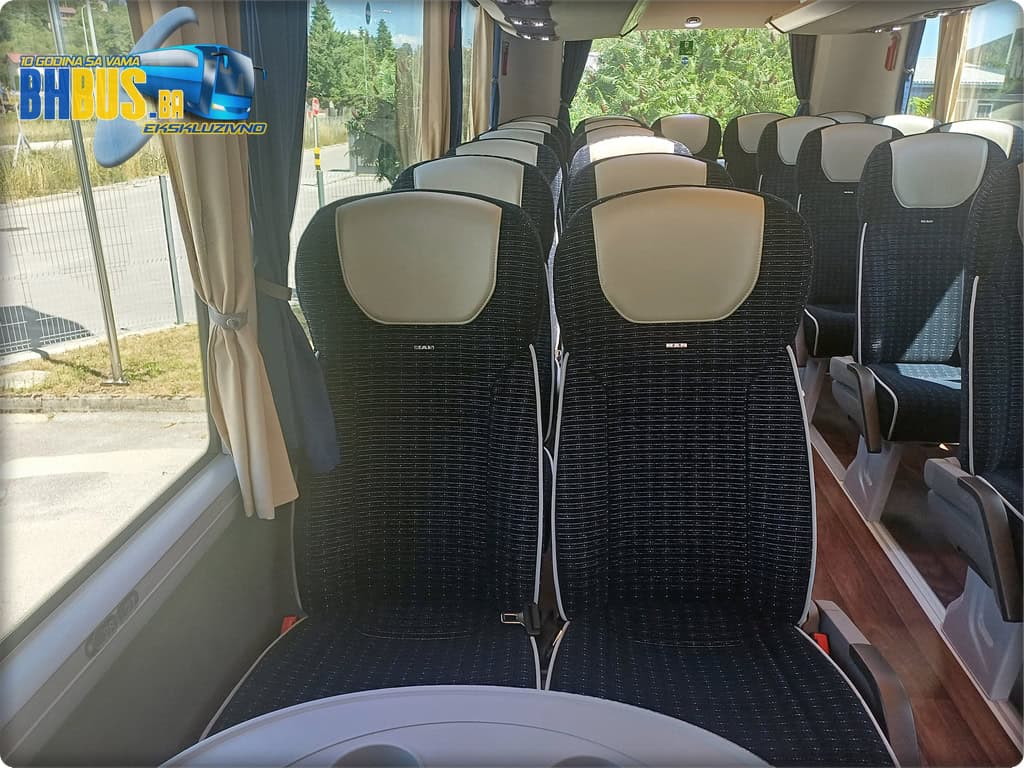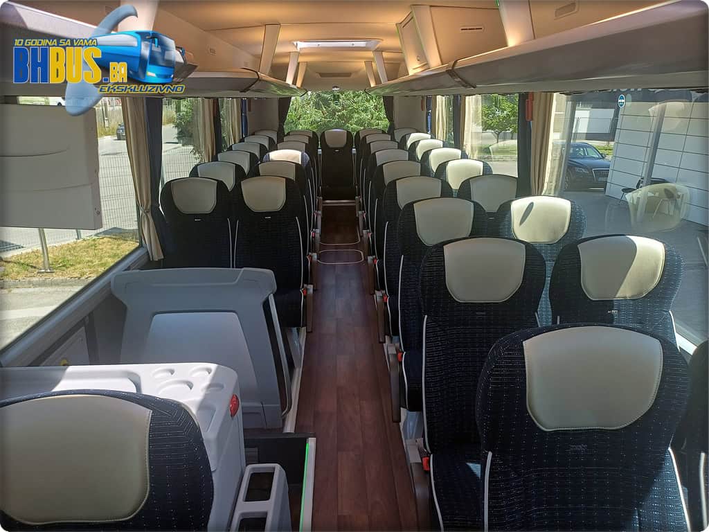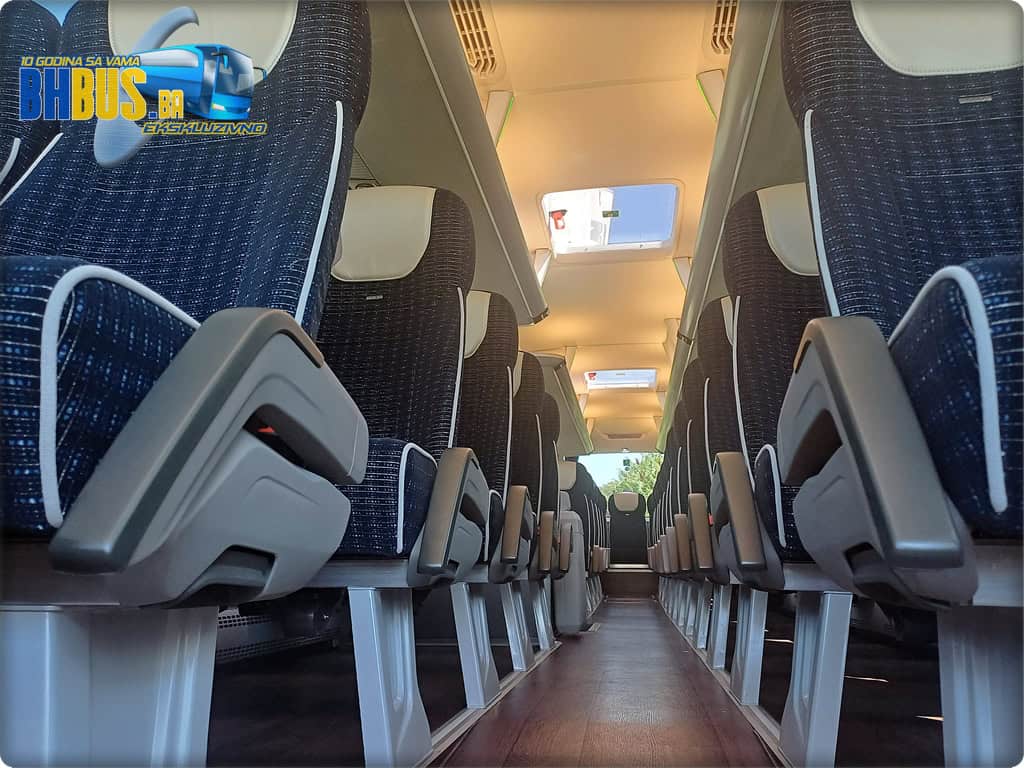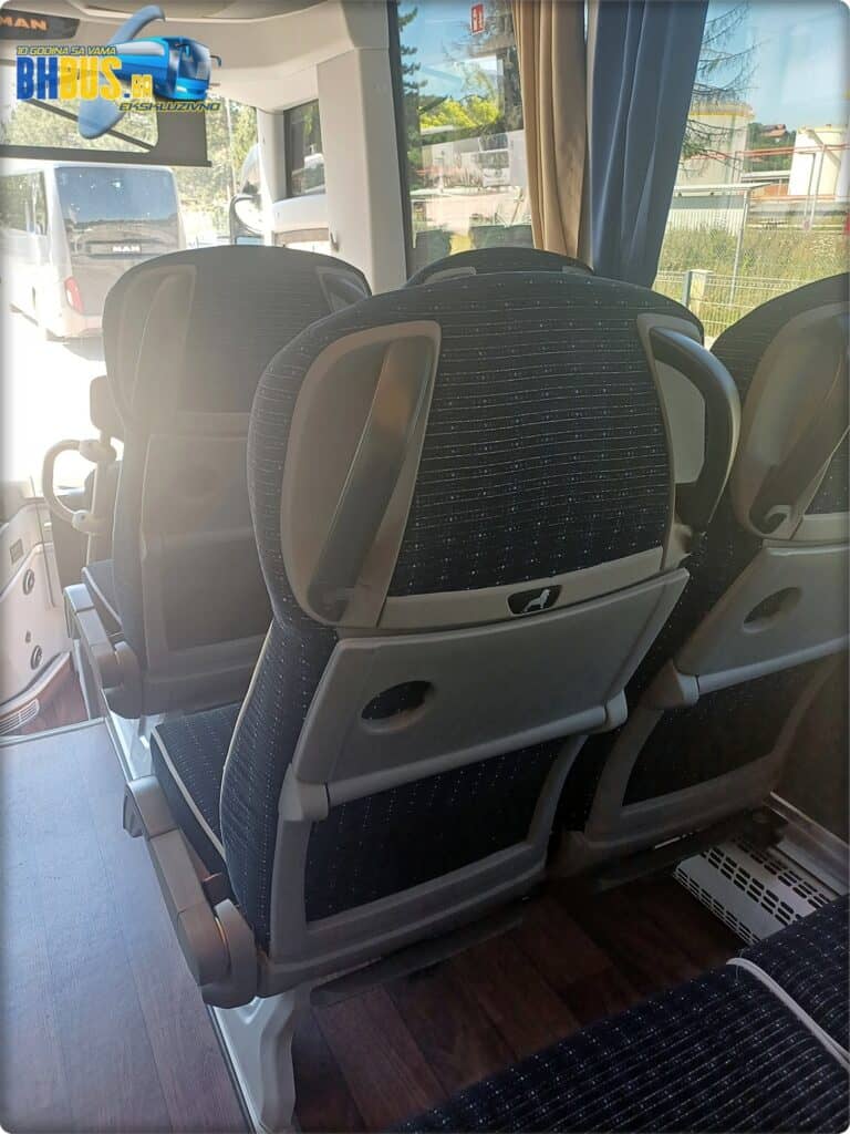 Ukupan kapacitet vozila je 49+1+1 sjedećih mjesta. Kao i na prethodno isporučenim MAN autobusima, sjedišta su proizvođača Kiel, model ComfortLine BasicPlus, urađena u kombinaciji tkanine i kožnog naslona za glavu. Značajke kao obaranje naslona, stolići, mrežice za lične stvari, naslonjači za noge, sigurnosni pojasevi i oslonci za ruke su dio standarda koji će putnicima osigurati da svako putovanje bude udobno. Dodatni MAN štih daje i stilizirani amblem na svakom sjedištu. Pod je urađen u imitaciji drveta, a WC je ugrađen ispred zadnjih vrata sa opcijom zaključavanja sa vozačkog mjesta i sa senzorom dima.