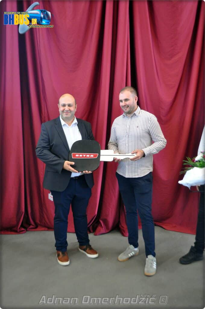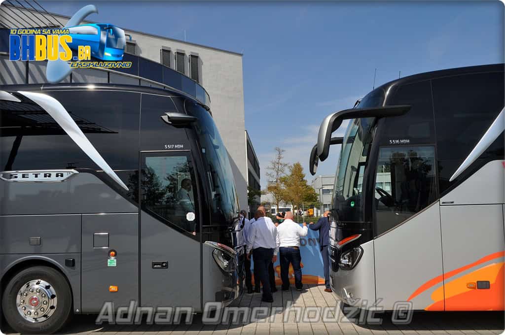 Jučer je u Setriom centru za korisnike u Neu Ulmu izvršena primopredaja Setre 517 HDH NextGen sa sistemom kamera i koja ispunjava GSR2 propise kompaniji Livno bus. Navikli smo da nas ova kompanija oduševljava sa svojim vozilima koja često nose epitete „prvih“, pa ni ovo nije izuzetak. Samo da napišemo – prva sa sistemom kamera, prva sa GSR2 opremom, prva 517-ka Top Class nove generacije u BiH i na Balkanu sa ovom opremom, prva u ovoj boji… Svečanoj isporuci vozila su prisustvovali partneri, prijatelji i vozači ove kompanije koji su uveličali ovaj značajan događaj kako za kompaniju Livno bus, ali tako i za cijelu autobusku scenu u Bosni i Hercegovini. Zanimljivo je i da je ekipa na primopredaju novog autobusa stigla sa Setrom 516 HDH, koju će nova 517-ka da zamjeni pa je i taj susret bio pun simbolike.