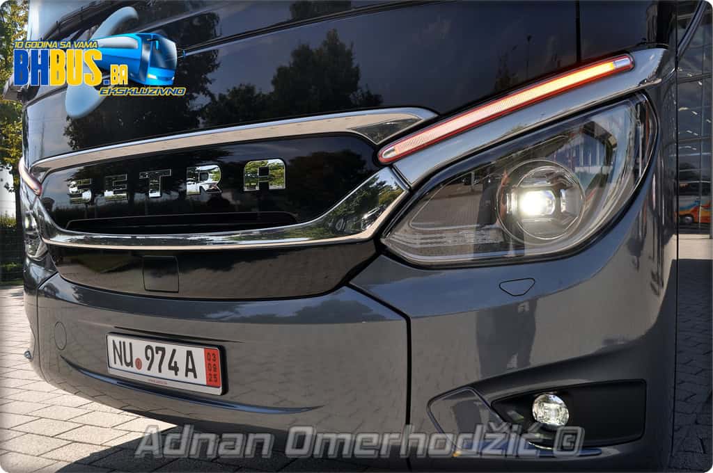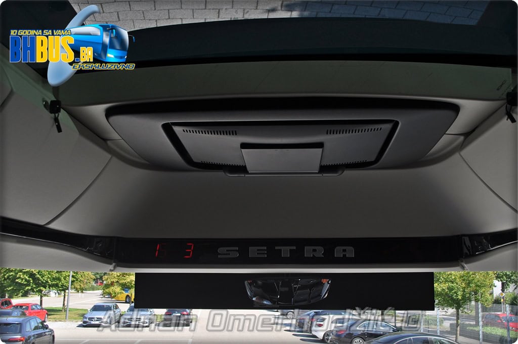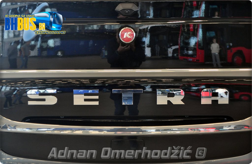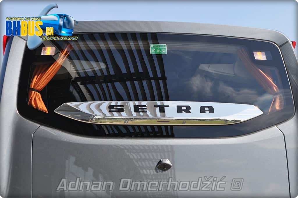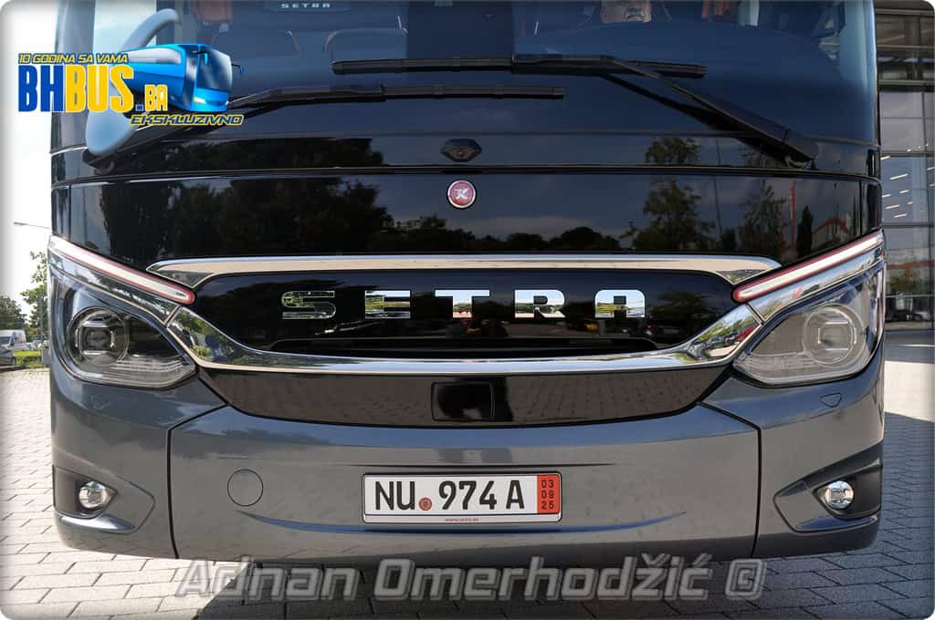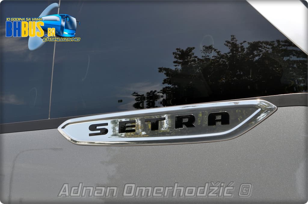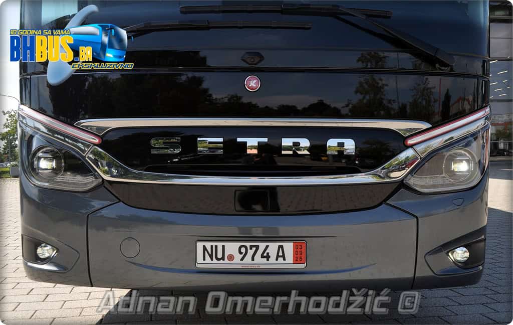 Autobus je u potpunosti dizajniran od strane vlasnika sve do u sitne detalje, baš kako je to slučaj sa svakim vozilom ove kompanije. Nova Setra je naručena u tamnosivoj metalik boji, a po dolasku novoj kući slijedi i potpuno brendiranje u već prepoznatljive boje i motive. Tu je i karakteristična bočna hromirana linija, poznata kao “La Linea”, koju nadopunjuju hromirani veliki logo Setra sa obje strane i na prednjoj maski. Osnivač Setre, Karl Kässbohrer, nije zaboravljen pa se njegovo prepoznatljivo K nalazi na felgama, prednjoj maski i volanu. Vozilo je opremljeno i sa prednjim displejem, koji će biti programiran po dolasku kući. Displej se nalazi iza prednjeg vjetrobranskog stakla koje je grijano i sa zaštitnom folijom.