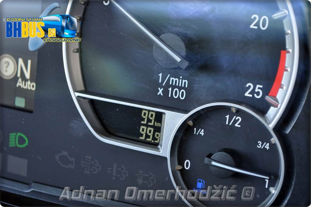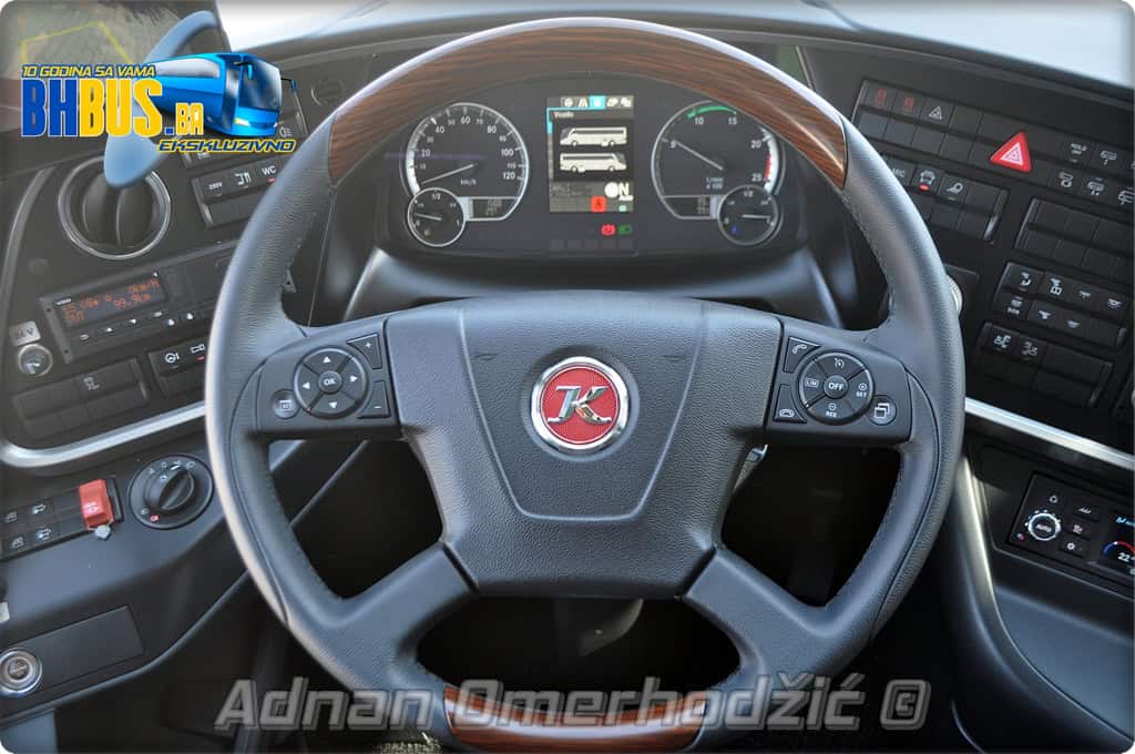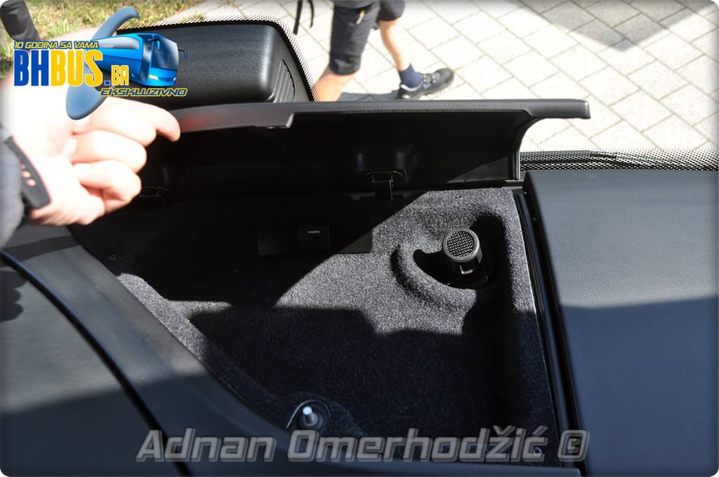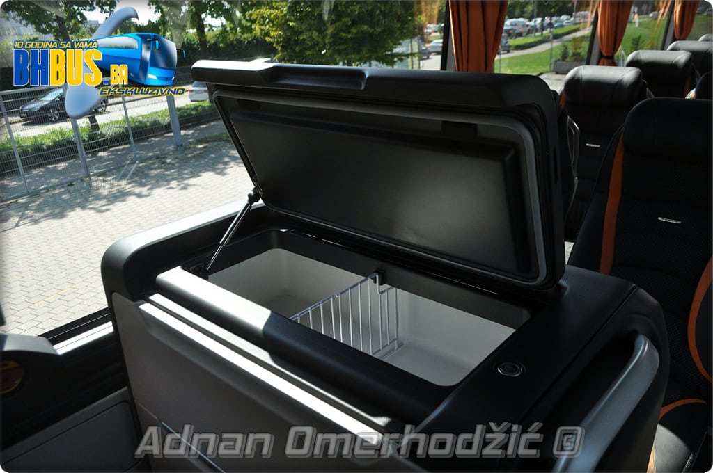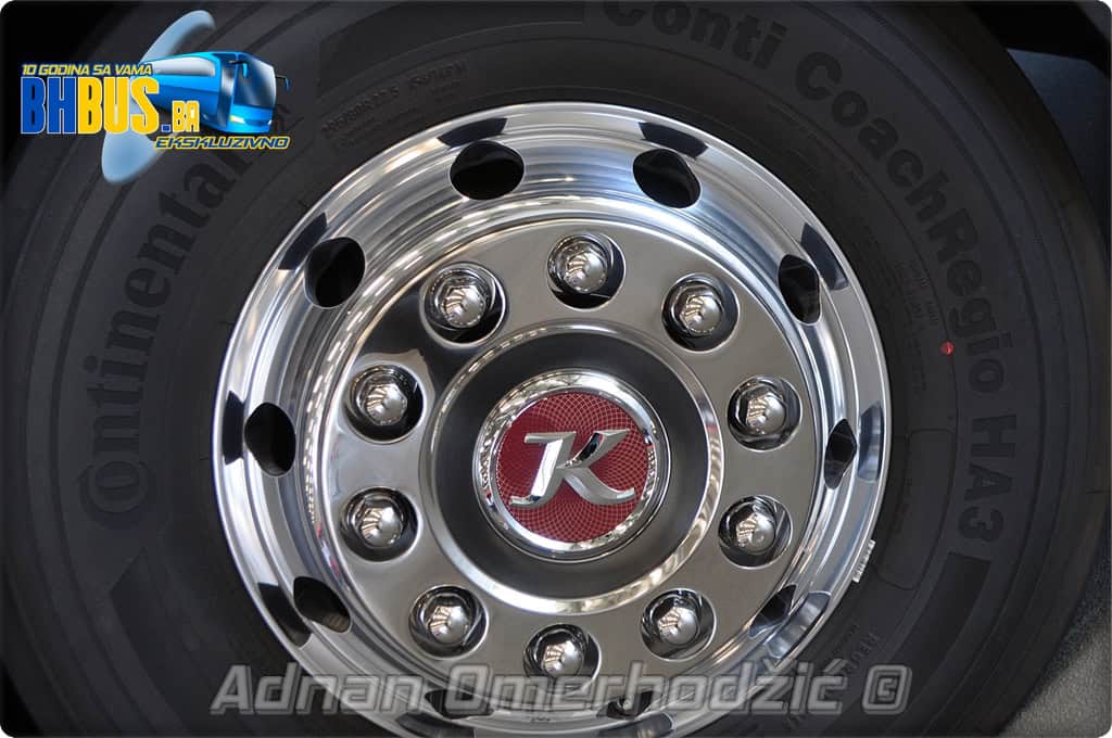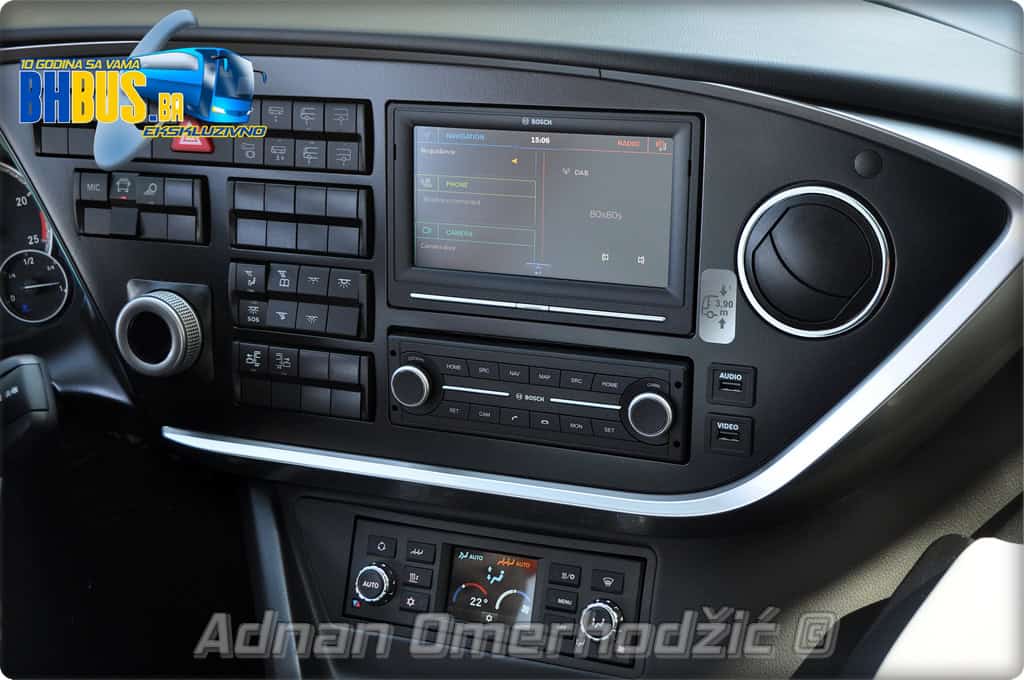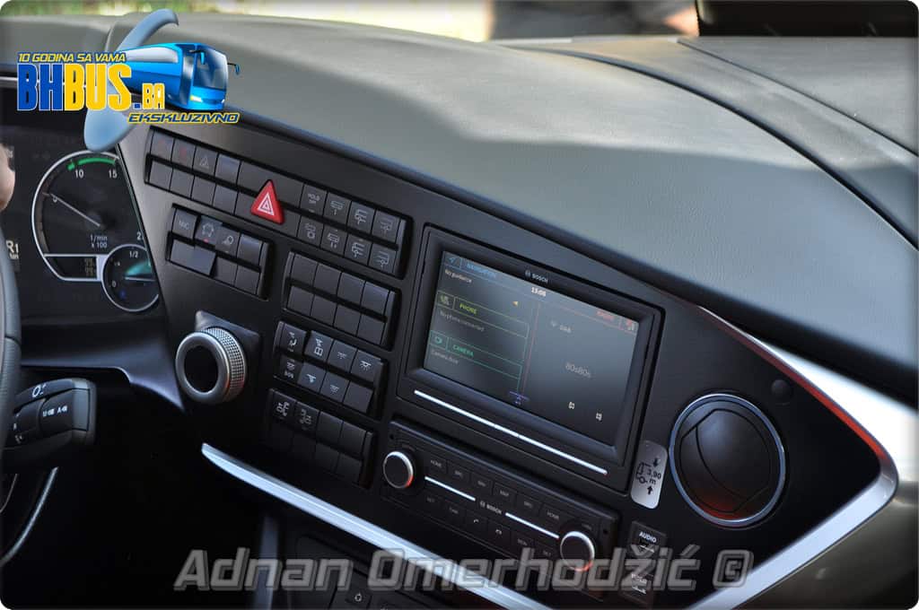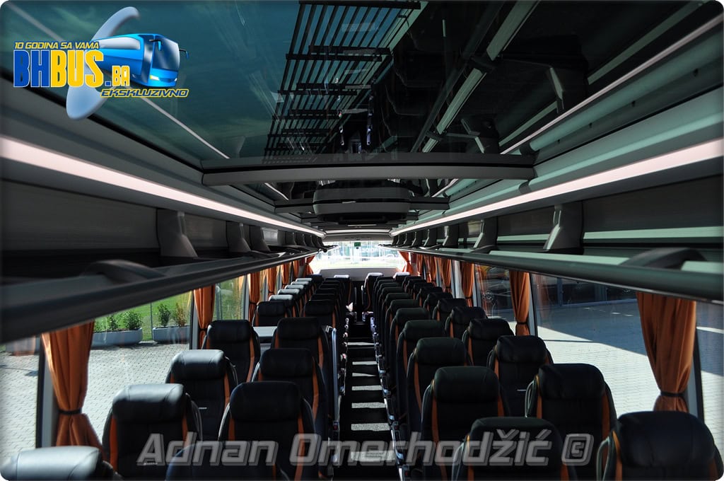 Ono što je još uočljivo na prvu je i nedostatak klasičnih retrovizora koji su zamjenjeni sistemom kamera. Vanjski izgled dodatno uljepšavaju i aluminijumske felge visokog sjaja na kojim se nalaze Continental gume u dimenziji 295/80 R22,5. Ukupni kapacitet rezervoara za dizel iznosi čak 830 litara! Veliki autobus sa sobom donosi i veliki prtljažni kapacitet. Osim stadnardnog prostora za prtljag u unutrašnjosti i između osovina, prostor za prtljag se nalazi i iznad prve osovine sa obje strane, čineći ukupan kapacitet prtljaga fantastičnih 13,9 m3. Za svaki slučaj, pozadi se nalaze i nosači za skibox, za koji vjerujemo neće biti potrebe. Prtljažni poklopci su sa paralelnim otvaranjem, a prtljažni prostor je osvjetljen. Sva rasvjeta na vozilu je u LED izvedbi uključujući i bočna gabaritna svjetla, dodatnu krovnu rasvjetu i krovno osvjetljenje na kraju vozila sa obje strane.