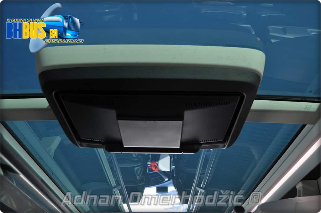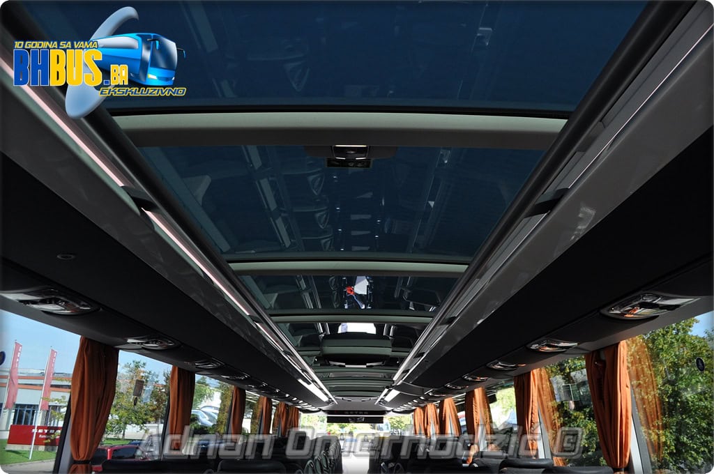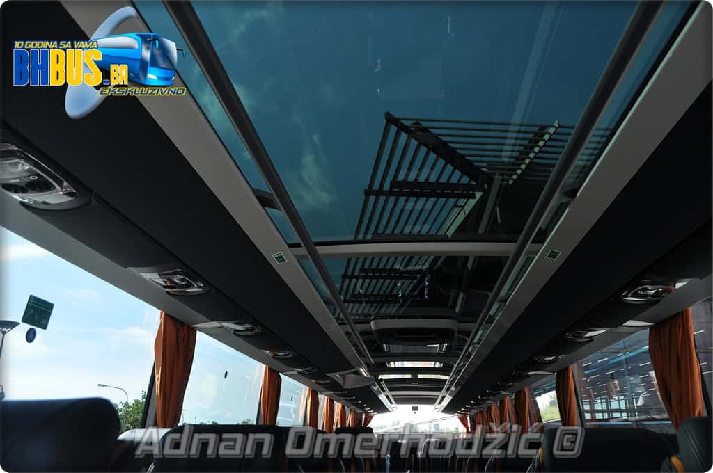 Ono što izdvaja ovaj autobus, a što će doprinijeti ukupnom pozitivnom iskustvu putovanja je i stakleni panoramski krov cijelom dužinom vozila. Zabavu tokom putovanja osigurat će Bosch COACH infotainment sistem koji sadrži radio, Bluetooth i navigaciju uz dva LCD monitora veličine 21.5 inča koji su elektro preklopni. Sistem ima opciju prikaza navigacione mape na monitorima u putničkom prostoru kao i puta ispred vozila zahvaljujući prednjoj kameri. Svaki red sjedišta je opremljen po jednom 230 V utičnicom koja se nalazi ispod prozora te duplim USB priključkom ispod sjedišta.