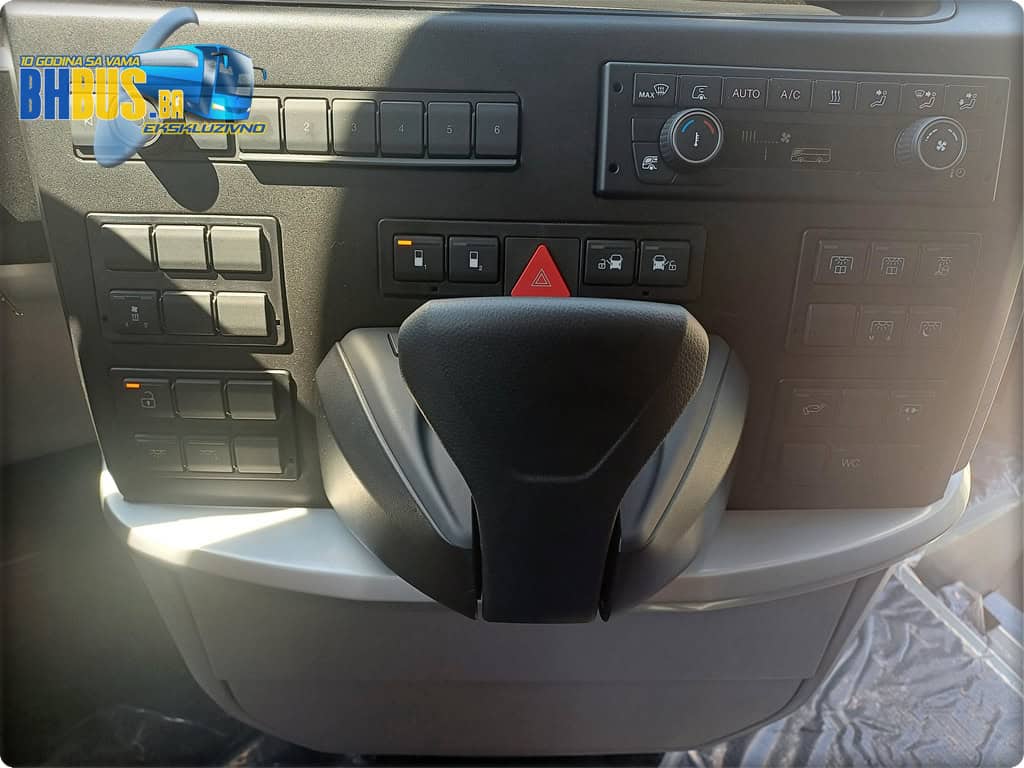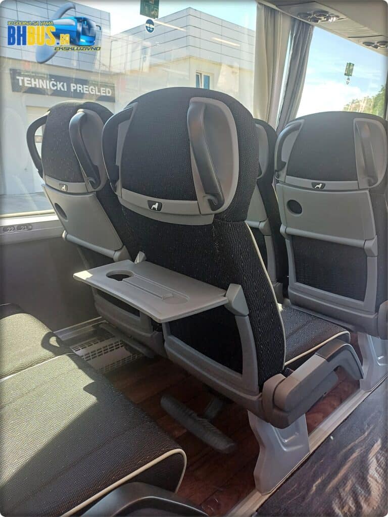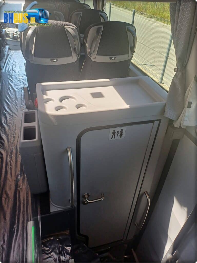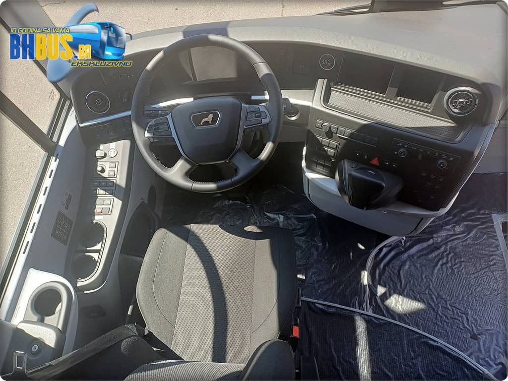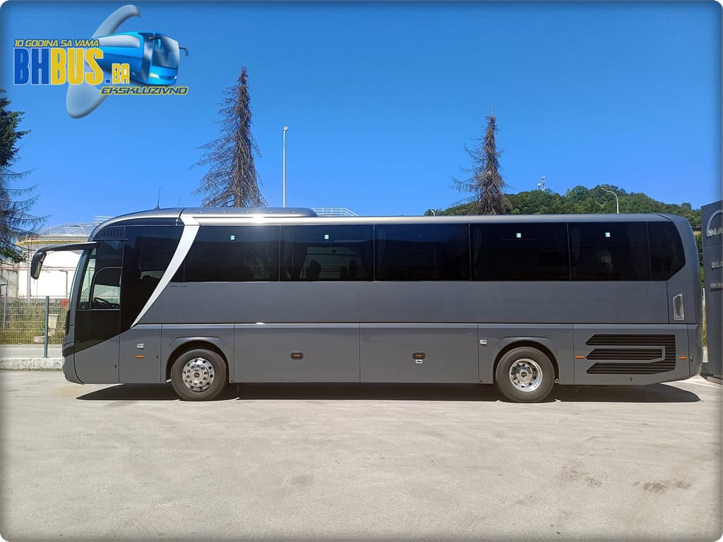 Radi se o klasičnom dvoosovinskom autobusu, a vlasnici kompanije su se odlučili da njihovo novo vozilo bude isporučeno u Texas Grey boji sa standardnim crnim poklopcem motora. Bočni poklopci prtljažnika su izolirani i imaju paralelogramsko otvaranje. Kučišta retrovizora u crnoj boji, dok su vanjski izgled zaokružile sjajne aluminijumske felge na kojim su montirani Bridgestone pneumatici u dimenziji 295/80 R22.5. Kapacitet rezervoara dizela je 705 litara, a rezervoara za AdBlue 60 litara. Kada pričamo o kapacitetima, da spomenemo da je kapacitet prtljaga 10 m3 (uključujući i police za ručnu prtljagu), što je sasvim dovoljno s obzirom da se kompanija bavi isključivo vanlinijskim prevozom.