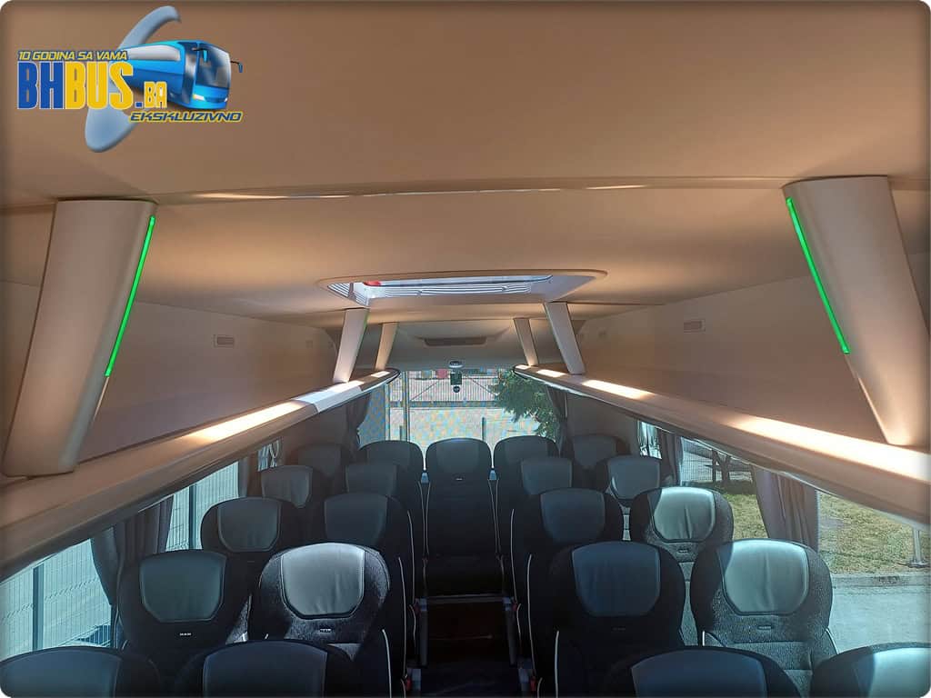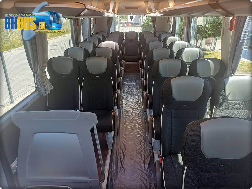 Pošto se radi o klasičnom dvoosovinskom vozilu, kapacitet je 49+1+1. Sjedšta su proizvođača Kiel i to model ComfortLine BasicPlus. Opremljena su sa preklopnim naslonima za ruke, preklopnim stolićima, mrežicama za novine, osloncima za noge i opcijom bočnog izmicanja dvojki prema hodniku. Sistem za zabavu tokom putovanja čini MMC sustav Multi Media Coach Advanced koji je opremljen Bluetoothom, navigacijom te DAB radiom, DVD i MP3 playerom. Za reprodukciju video sadržaja zadužena su dva 19-inčna LCD monitora smještena u prednjem dijelu i kod drugih vrata. Putnicima će na raspolaganju biti i nekoliko 230 V utičnica, kao i frižider, toalet i sistemi klimatizacije i grijanja.