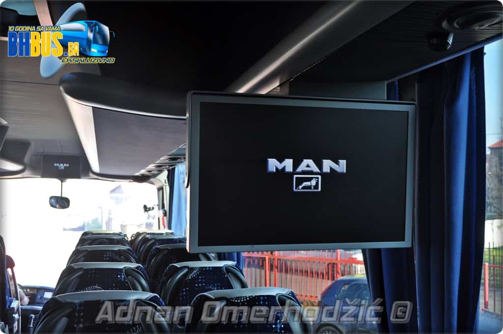 Unutrašnjost također pokazuje da ovaj MAN ipak ima znatno bolju opremu od serijskih modela. Vozačevo mjesto je opremljeno sa Isri sjedištem koje ima mikrofon, opciju grijanja i klimatizacije te vibriranje kada su aktivni sigurnosni sistemi. Prostorom dominira dobro poznati multifunkcionalni volan sa instrument tablom i prekidačima te ostalim potrebnim sadržajima. Vozilo ima najnovije sigurnosne sisteme koji će vožnju olakšati i učiniti bezbjednom. Na sigurnost putnika će paziti i kamera na drugim vratima, kao i kamera na zadnjem dijelu vozila, a fabrička navigacija će svakako biti od pomoći vozačkom osoblju. Također, vozačko osoblje će odmor i pauze moći provoditi u bunkeru koji se nalazi iza drugih vrata, a koji je osim madracem, opremljen sistemom klime i grijanja te telefonskom vezom sa vozačim prostorom.