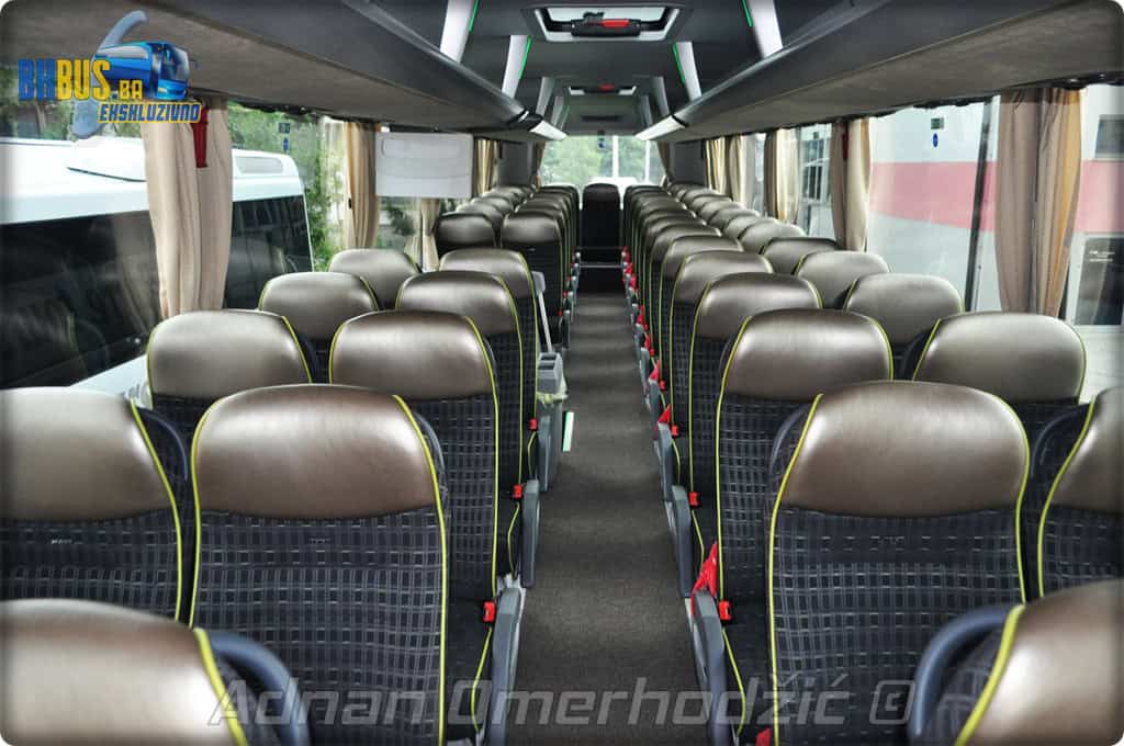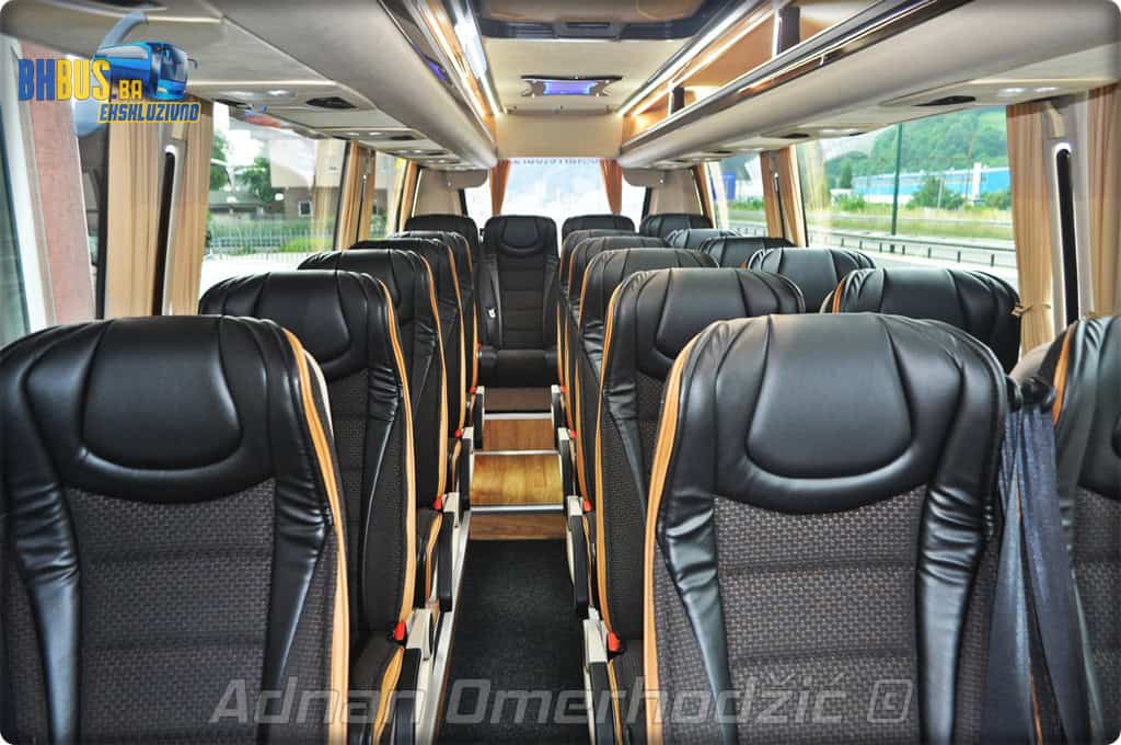 Ukupan kapacitet vozila je 19+1+1, a upravo putnički prostor ostavlja bez daha. Dominiraju svjetli dezeni bočnih strana i plafona uz izuzetno luksuzna turistička sjedišta u crno-zlatnoj izvedbi i u kombinaciji kože i tkanine. Sjedišta, osim opcija obaranja naslona, imaju rukonaslon na preklop, stolić te mrežice za lične stvari. Vrijedi istaći da se zadnja klupa sa četiri sjedišta može dodatno, po potrebi, povući još unazad tako da se kompletan raspored sjedišta može povući za nekoliko centimetara kako bi se dodatno povećao komfor putnika. Iznad sjedišta se nalazi multimedijalni set sa rasvjetom, diguzorima za zrak i zvučnicima, a svako sjedište je opremljeno i sa USB priključkom što je dodatni plus.
