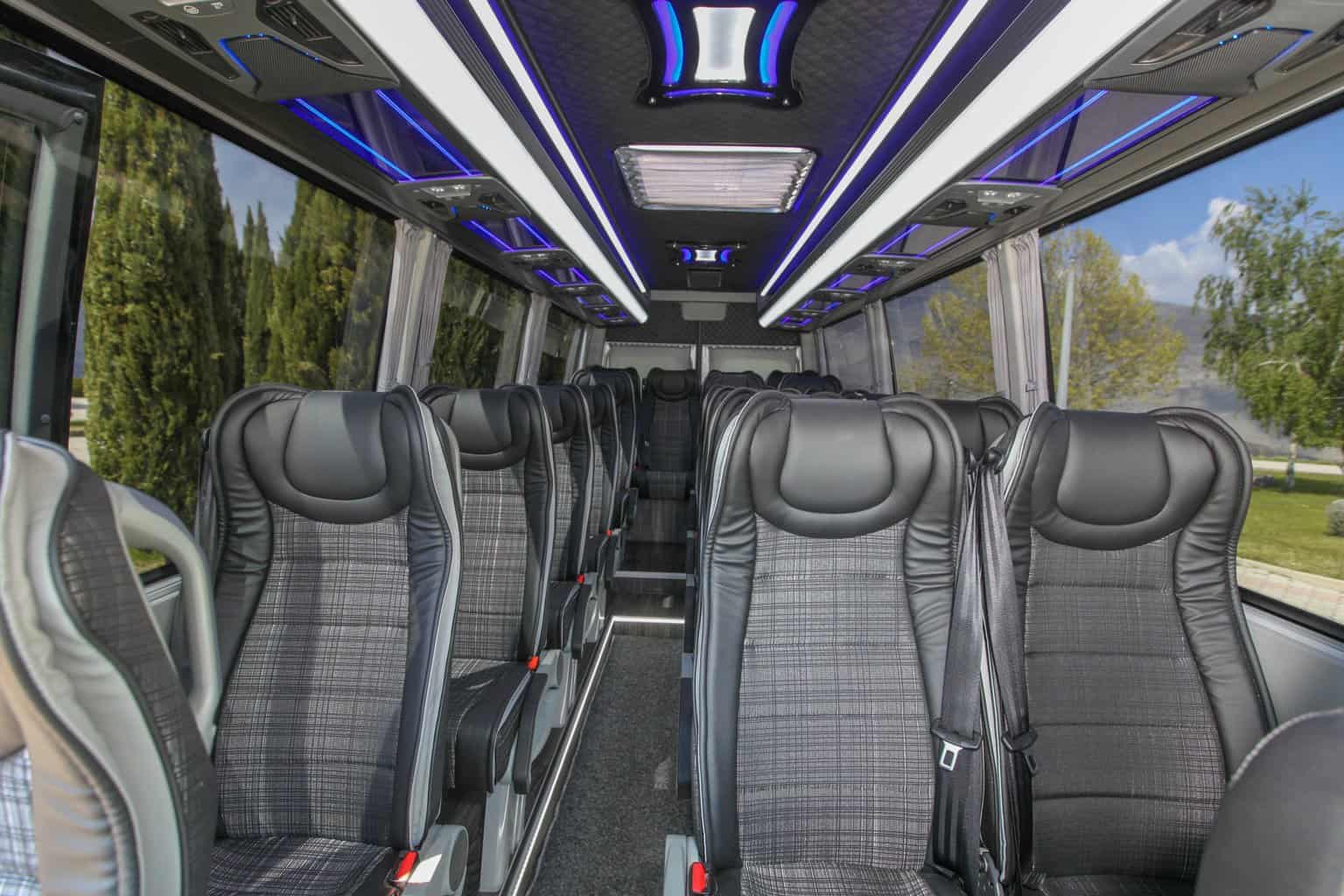 Unutrašnjost je također urađena sa ukusom i u luksuznom stilu. Osim vozača, u unutrašnjost se udobno može smjestiti 20 putnika. Sjedišta su turistička Sege sa naslonom na obaranje, sklopivim rukonaslonom, a svaki putnik će na raspolaganju imati i mrežiu za lične stvari te stolić na rasklapanje. U ljetnim mjesecima će vozači moći da se rashlade sa prednjom Mercedesovom klimom, a putnici sa Yilkar klimom u zadnjem dijelu dok će grijanje sa dodanim ventilatorima, potenciometrom i elektromagnetnim ventilom biti na raspolaganju u hladnim danima. Frižder, mikrofon, LCD monitor, touch-screen multimedija, USB priključci i LED osvjetljenje hodnika su samo još neke od prednosti koje nudi ovo vozilo. Unutrašnje galerije iznad sjedišta i produbljeni gepek pozadi će osigurati da svi putnici imaju mjesta za svoj prtljag.