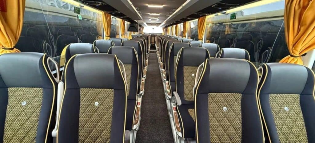 Sa 55 putničkih sjedišta i 2 sjedišta za vodiče i vozača, plus centralno smještenim toaletom, vaša putovanja će biti udobna, bez ikakvih želja. Putnici će uživati ​​u vožnji u svojim Softline tapeciranim sjedištima, koja se mogu naginjati i bočno pomicati, a imaju integrirane naslone za ruke, oslonac za noge i sklopivi stolić. Putnici mogu povezati svoje uređaje na dostupne USB priključke, i tipa A i tipa C, čitati koristeći pojedinačna LED svjetla ili gledati dokumentarce ili filmove na jednom od dva 19-inčna monitora. Bosch audio/medijski sistem koji je instalirao Mercedes garantuje visok kvalitet u ovom području. Sve se ovo obezbjeđuje u klimatski kontroliranom okruženju (Evocool Comfort) s aktivnim površinskim filterima i antivirusnom funkcijom, osiguravajući ugodnu temperaturu tokom cijele godine. Prtljažni prostori i unutrašnji nosači će se pobrinuti za vaš prtljag tokom putovanja radi vaše udobnosti i sigurnosti.