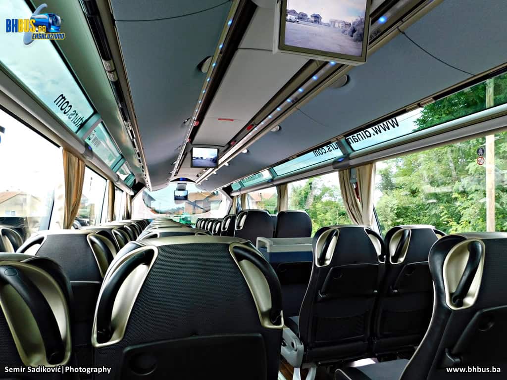 Na zadnjim vratima vozila smješten je toalet u XL izvedbi prilagođen osobama višeg rasta, a nasuprot njega nalazi se i kafe aparat. Pored gore svega nabrojanog imamo i dva frižidera sa jako velikim kapacitetom za tečnosti ili možda hranu. Kokpit vozača napravljen je sa jako velikim ukusom za dizajn, krenuvši od ergonomskog sjedala za vozača i završivši na instrument tabli vozila. Upravljač vozila je opremljen sa više multifunkcionalnih tipki za pojedine komande u vozilu. Jedna sasvim nova stvar koju smo spazili tokom pregleda kokpita jeste nova generacija digitalnog tahografa. O tome nam je gospodin Babić rekao: “Trudimo se da svaki vozač u ovome vozilu ima na raspologanju najsavremenije tehnologije koje su trenutno dostupne na tržištu, pa smo samim tim odlučili da u ovog “ljepotana” ugradimo i novu generaciju digitalnog tahografa.”