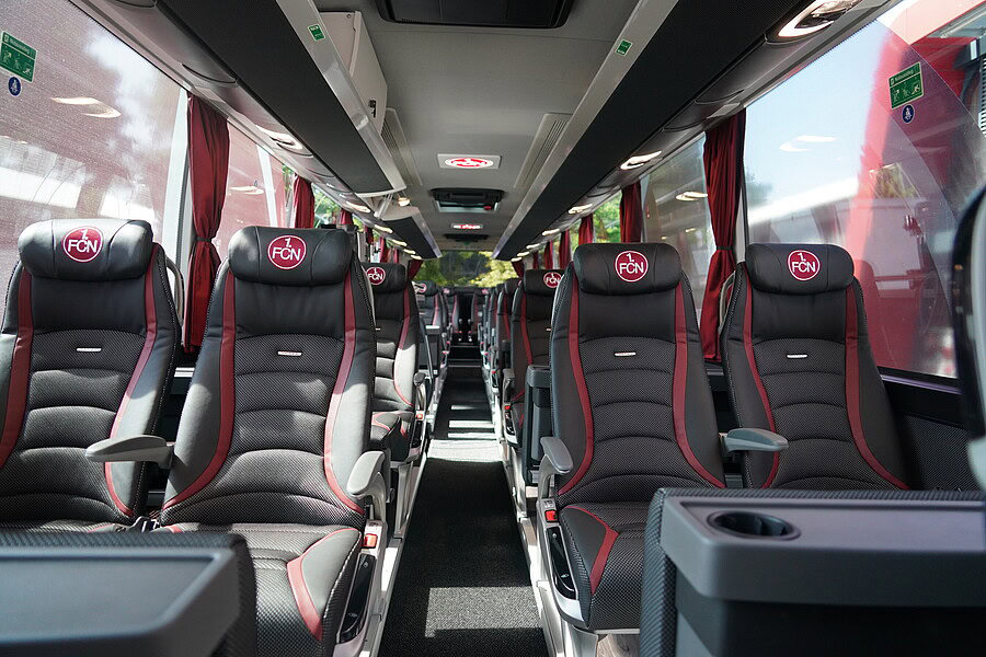 Na prvi pogled, novi timski autobus fudbalera iz Nürnberga izgleda kao klasični autobus – ali taj utisak je varljiv. Vozilo nudi brojne posebne karakteristike prilagođene potrebama fudbalskog tima. U unutrašnjosti, igrači mogu očekivati visokokvalitetnu unutrašnjost s rotirajućim stolovima, individualno podesivim osloncima za noge i četiri velika ekrana. Svako sjedište ima USB-A, USB-C i utičnicu, a ukupni broj sjedišta je 30. Kuhinja u autobusu ima veliki aparat za kafu, pećnicu za kobasice i četiri frižidera. Posebna praktičnost je i ta što se stolovi u zadnjem dijelu autobusa mogu spustiti na visinu sjedišta što je savršeno za opuštanje nakon napornih igara.