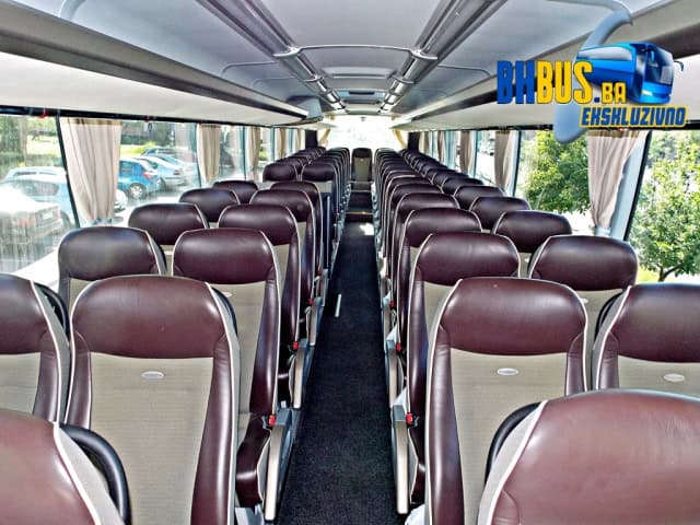 Unutrašnjost vozila je opremljena sa 3 LCD TV koji će upotpuniti užitak u toku noćne vožnje, a tu je naravno i WC, dva frižidera, dva mikrofona, automat za kafu i obavezni klima uređaj. Naravno tu je i indvidualno osvjetljenje u unutrašnjosti, kao i CD-MP3, navigacija i ostala oprema koja dolazi u ovim modelima. Za sigurnu vožnju će se pobrinuti i ABS, tempomat, intarder, hidro pojačivać upravljača i ostala popratna oprema, dok će se za sigurnu vožnju nazad pobrinuti kamera preko koje možete gledati da li ima išta iza Vas.