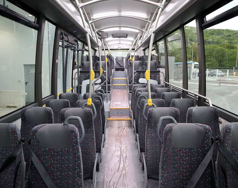 Osim 55 sjedišta i navedenih mjesta za osobe sa smanjenom pokretljivošću, u unutrašnjosti se nalaze još i rukohvati od nehrđajućeg čelika u gornjem dijelu vozila. Dva rukohvata imaju USB utičnice za punjenje mobilnih uređaja, a USB priključak se nalazi i sa strane u prvom redu sjedišta. Klima uređaj, utičnice od 220V, Wi-Fi, Actia-550 zvučni sistem, 19-inčni monitor u prednjem dijelu vozila i Hanover linijski displeji završavaju spisak unutrašnje opreme.
