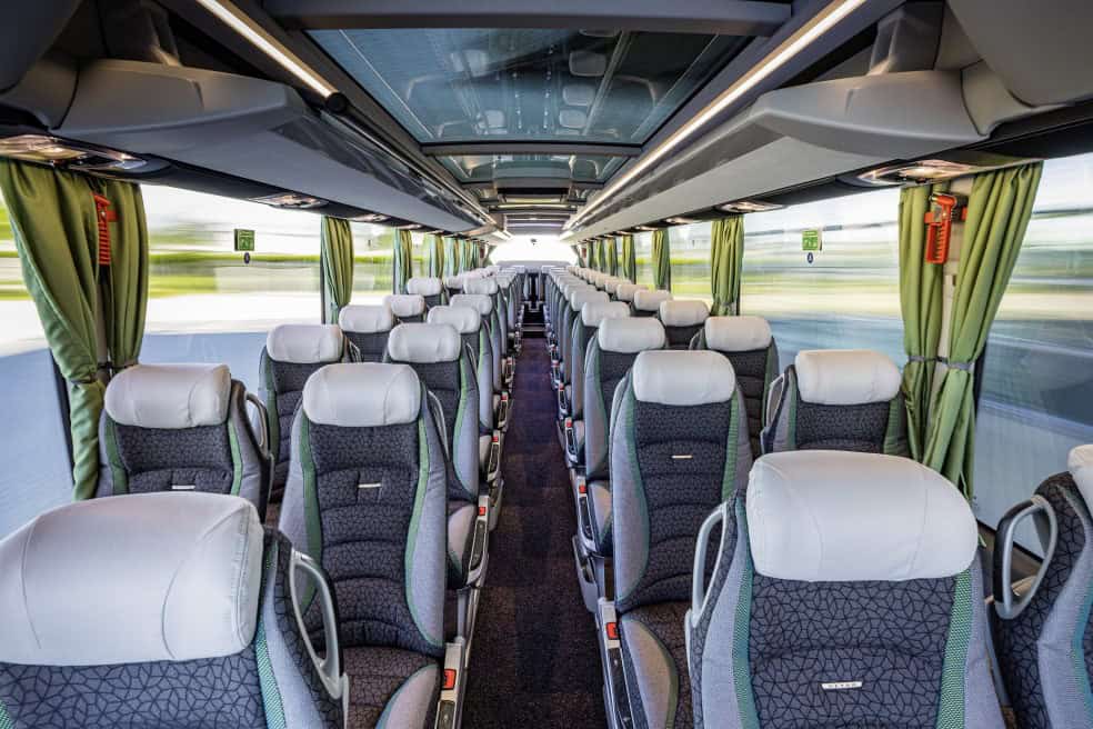Velikodušna putnička kabina TopClass 500 autobusa odlikuje se visokokvalitetnim materijalima. Danju je preplavljena svjetlošću, a noću je atmosfersko osvijetljeno zahvaljujući sofisticiranom konceptu rasvjete. Upečatljivi detalji, individualna oprema i sjedišta, kao i grijanje i kontrola klime, oblikuju putnički prostor. Na zahtjev se može dobiti i spektakularni panoramski krov TopSky Panorama.