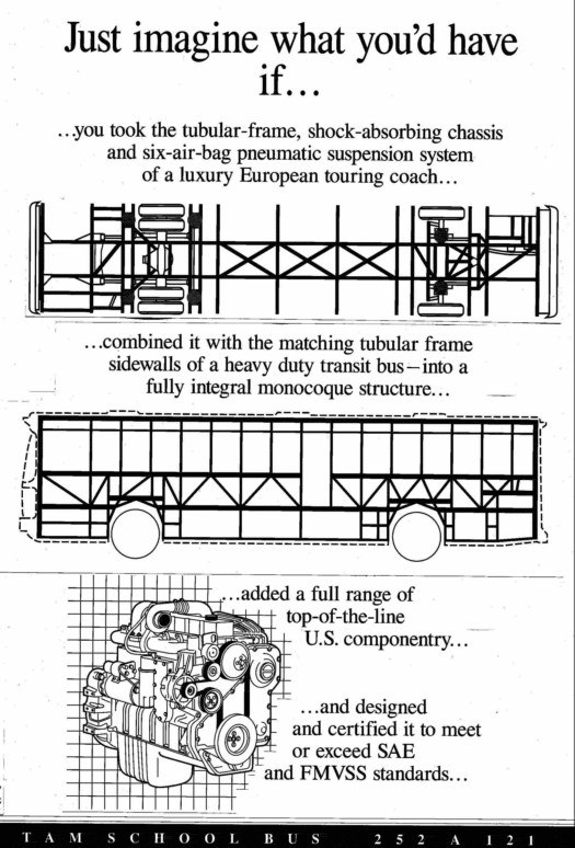 U istom periodu Nacionalni odbor za bezbjednost na drumovima (National Highway Traffic Safety Administration) je otvorio konkurs za novu generaciju školskih automobila i TAM je tu uvidio svoju priliku. Ispitane su mnogobrojne organizacije kojima su takvi proizvodi bili potrebni, a na bazi školskih autobusa se često proizvode i autobusi za prevoz zatvorenika i ostale potrebe zatvorskih institucija.