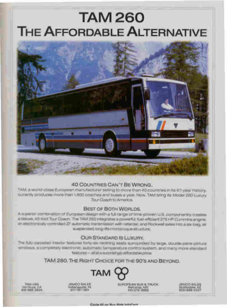 Spomenućemo da je tokom 1992. godine TAM isporučio Amerikancima i 12 turističkih autobusa 260 sa planom za dodatnih 30, ali dalju isporuku je zaustavio spomenuti rat. Neki od originalnih modela su još uvek na američkim ulicama. Više detalja o ovom poduhvatu moći ćete pročitati u drugom dijelu priče TAM u SAD.